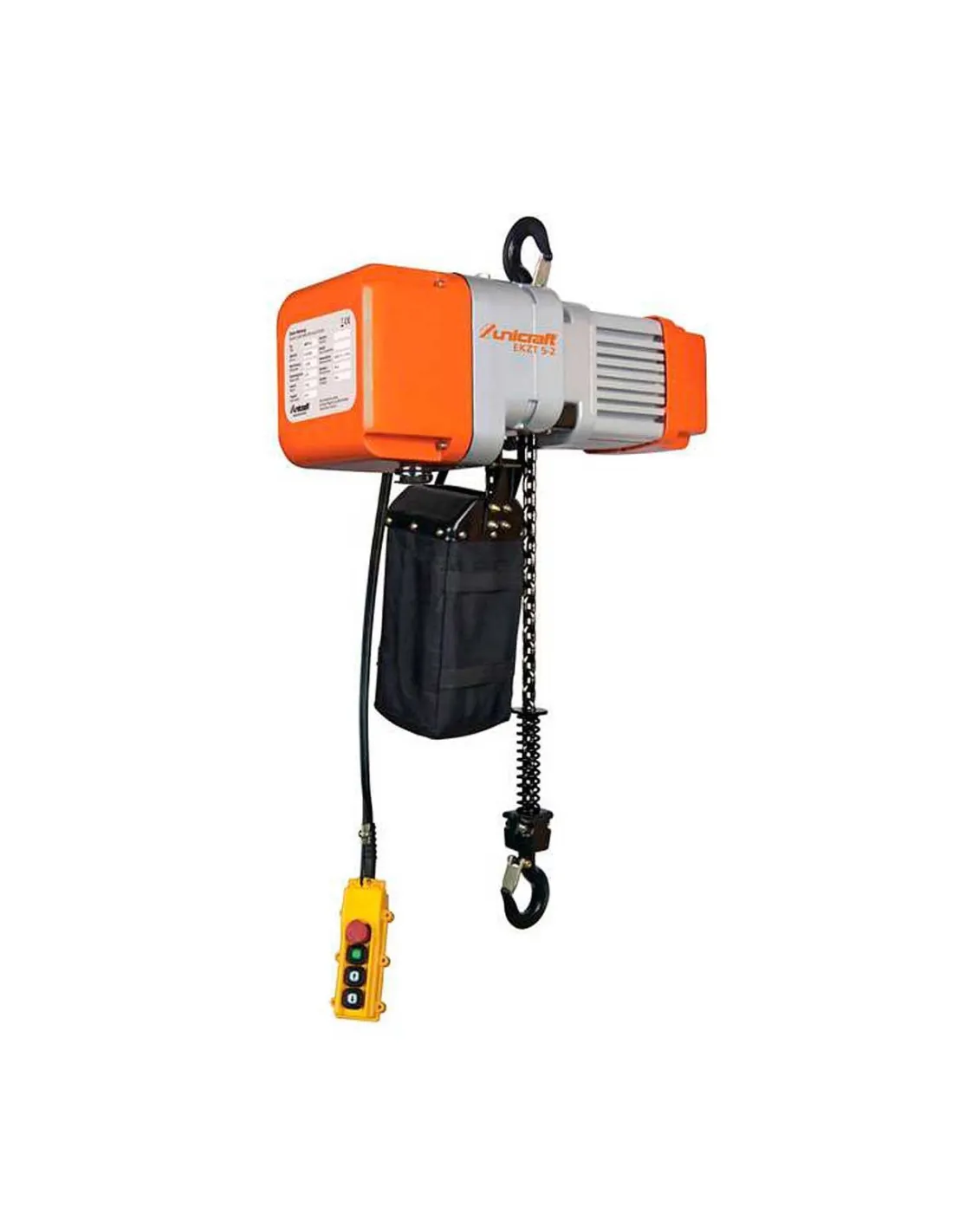 El Polipasto Eléctrico de Cadena EKZT 5-1 de Unicraft permite elevar una carga hasta una altura de 6 metros, con un peso máximo de 500 kilos. Dispone de sistema eléctrico Siemens y una única cadena de elevación.