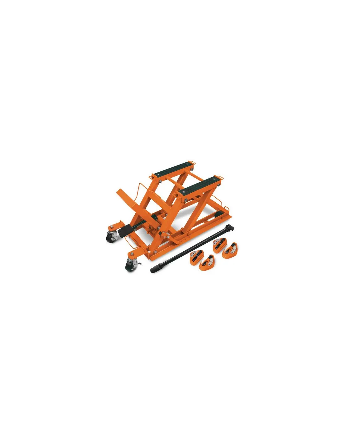 El Elevador de Motos MH 680 de Unicraft permite que el vehículo alcance una altura máxima de 410mm. Adecuado para el trabajo con bicicletas, motocicletas y quads.