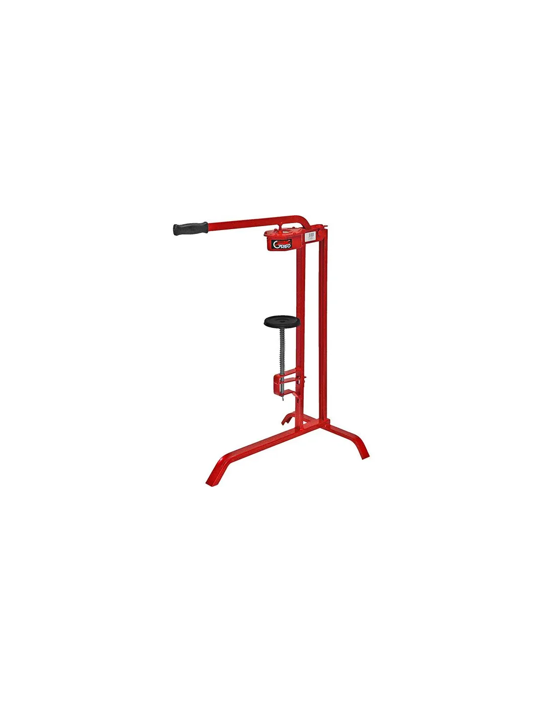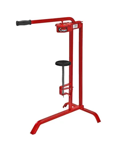 Encorchadora con patas y mordazas de latón para botellas grandes de vino.