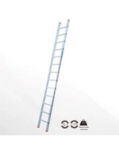Escalera industrial profesional simple (1 tramo). Fabricada en aluminio nervado para otorgar máxima resistencia. Ancho interior de 290 mm. Cómodo peldaño antideslizante de 25x25 mm. Tacos antideslizantes para garantizar un mejor agarre.