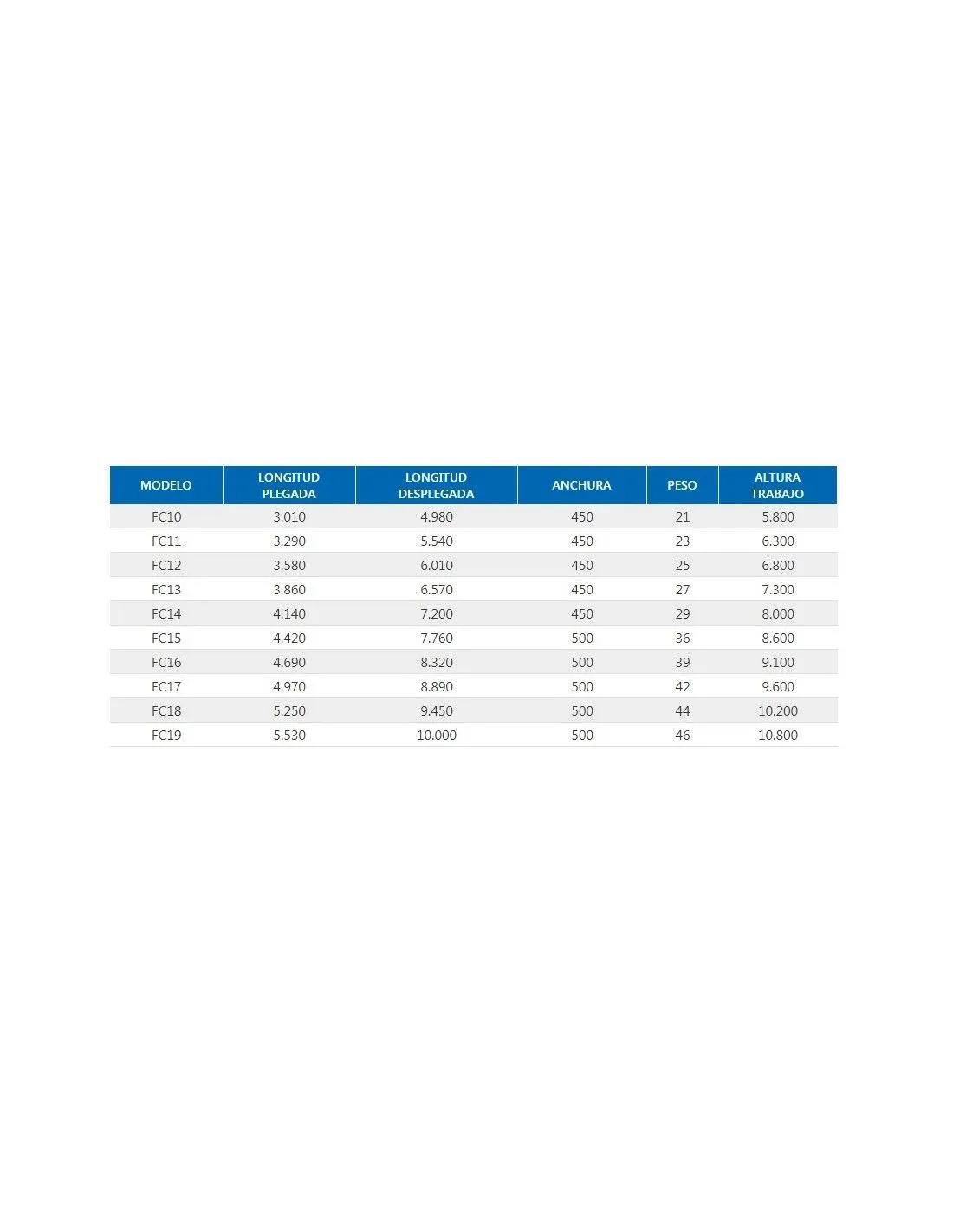 Altura en tijera: 3,15 metros
