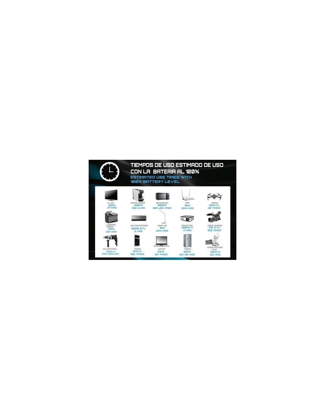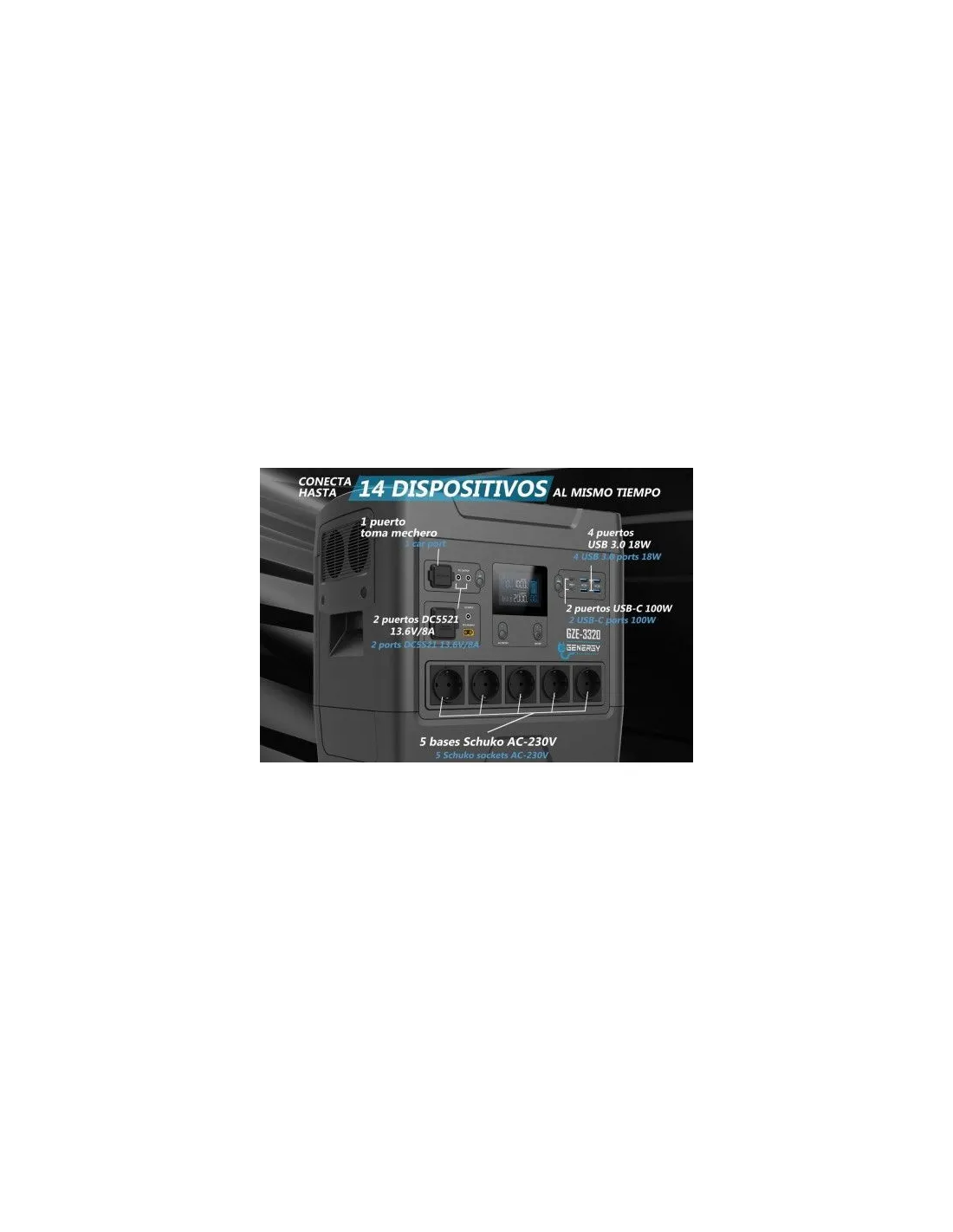 Es una fuente de energía que no requiere de combustibles y, por tanto, no genera emisiones. Dispone de múltiples opciones de puertos de salida para todo tipo de dispositivos y es compatible para alimentar una amplia gama de aparatos con diferentes tomas de corriente de salida: Schuko, toma de mechero, puertos USB o puerto DC5521. Energía limpia y respetuosa con el medio ambiente, cómoda y práctica para las personas.