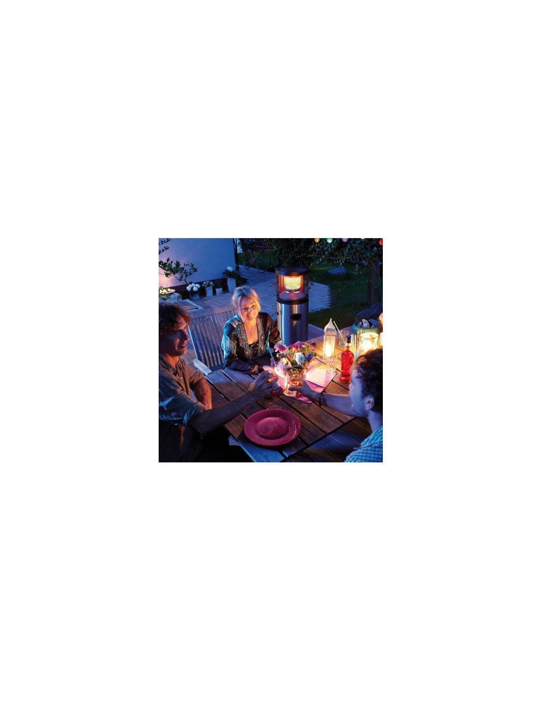 Estufa de gas para exteriores, compacta y potencia capaz de emitir un agradable calor a la altura de un asiento. Es perfecta para colocar bajo toldos y carpas. Altamente eficiente gracias a su sistema de reflexión que permite dirigir el calor donde convenga. Con ruedas y asa para su fácil transporte. Estufa de gas butano o propano.