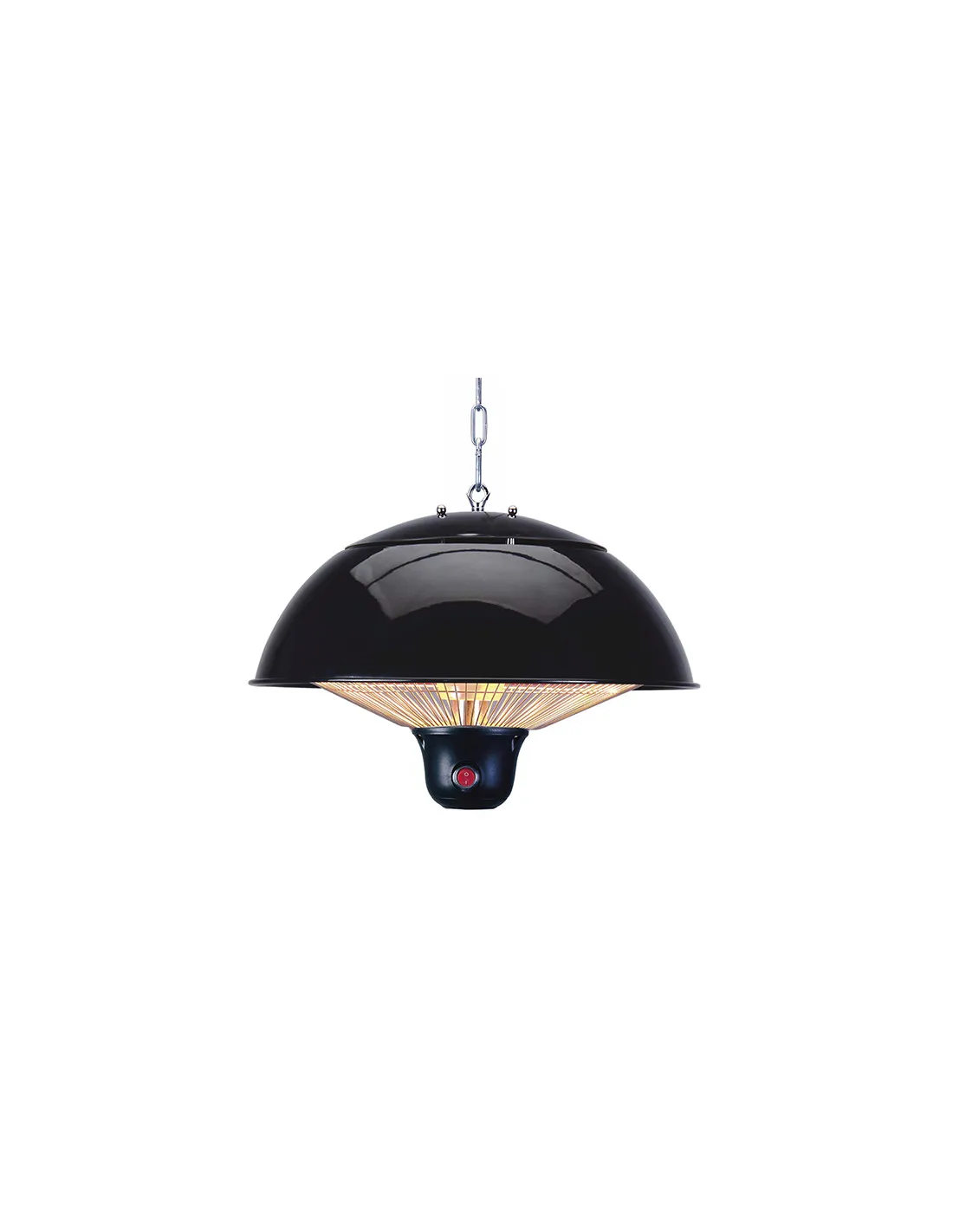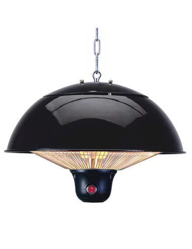 Estufa halógena de techo para crear una atmósfera agradable de forma eficiente. Indicada tanto para uso interior como exterior. Fabricada en metal, con rejilla metálica protectora y protección IP34.