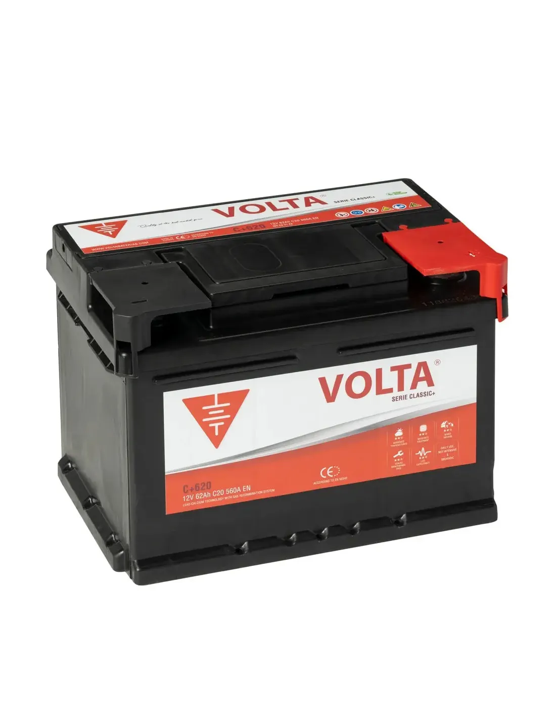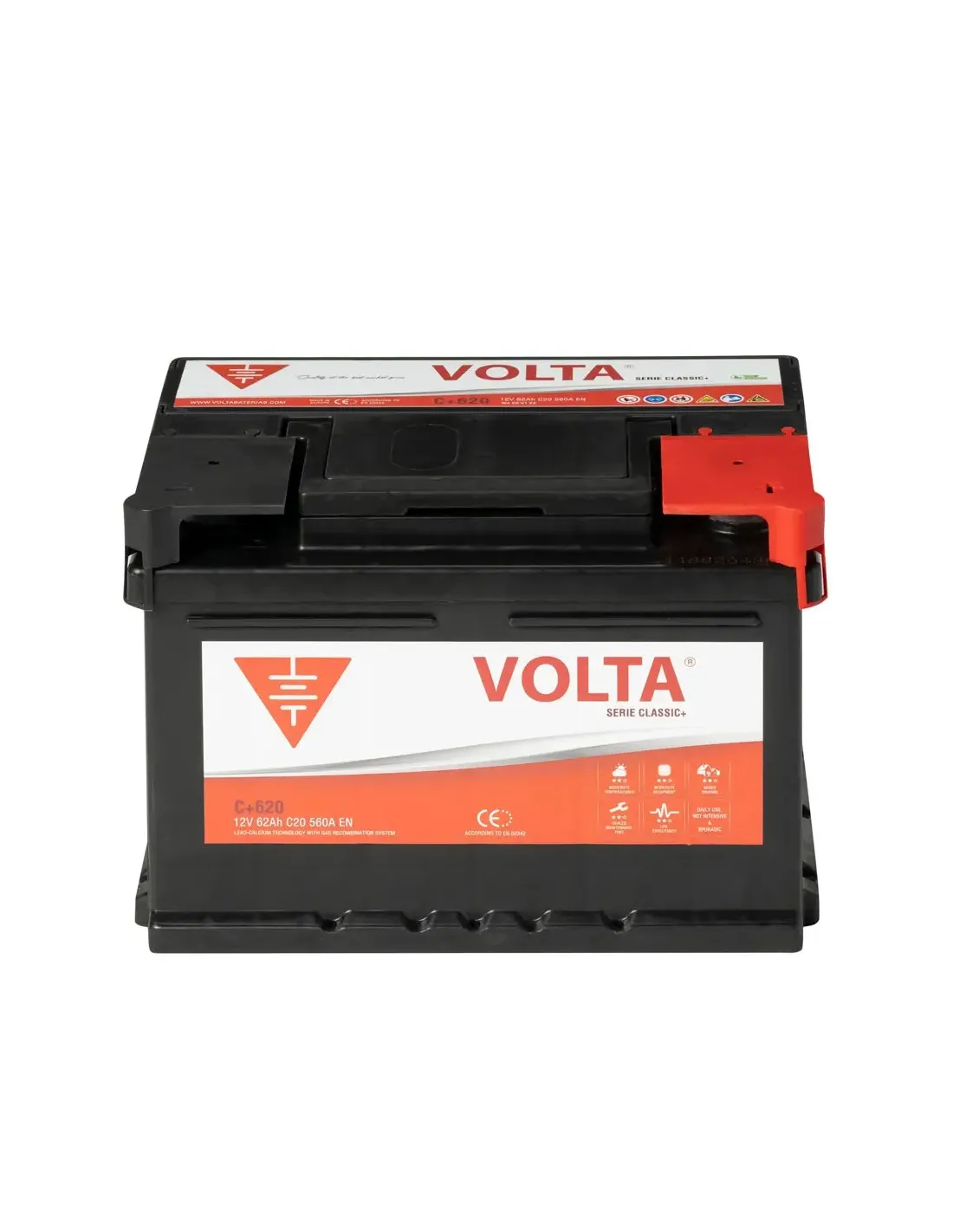 Batería de Coche 62 Ah 560 A EN Volta C+620D Classic Plus +Dcha