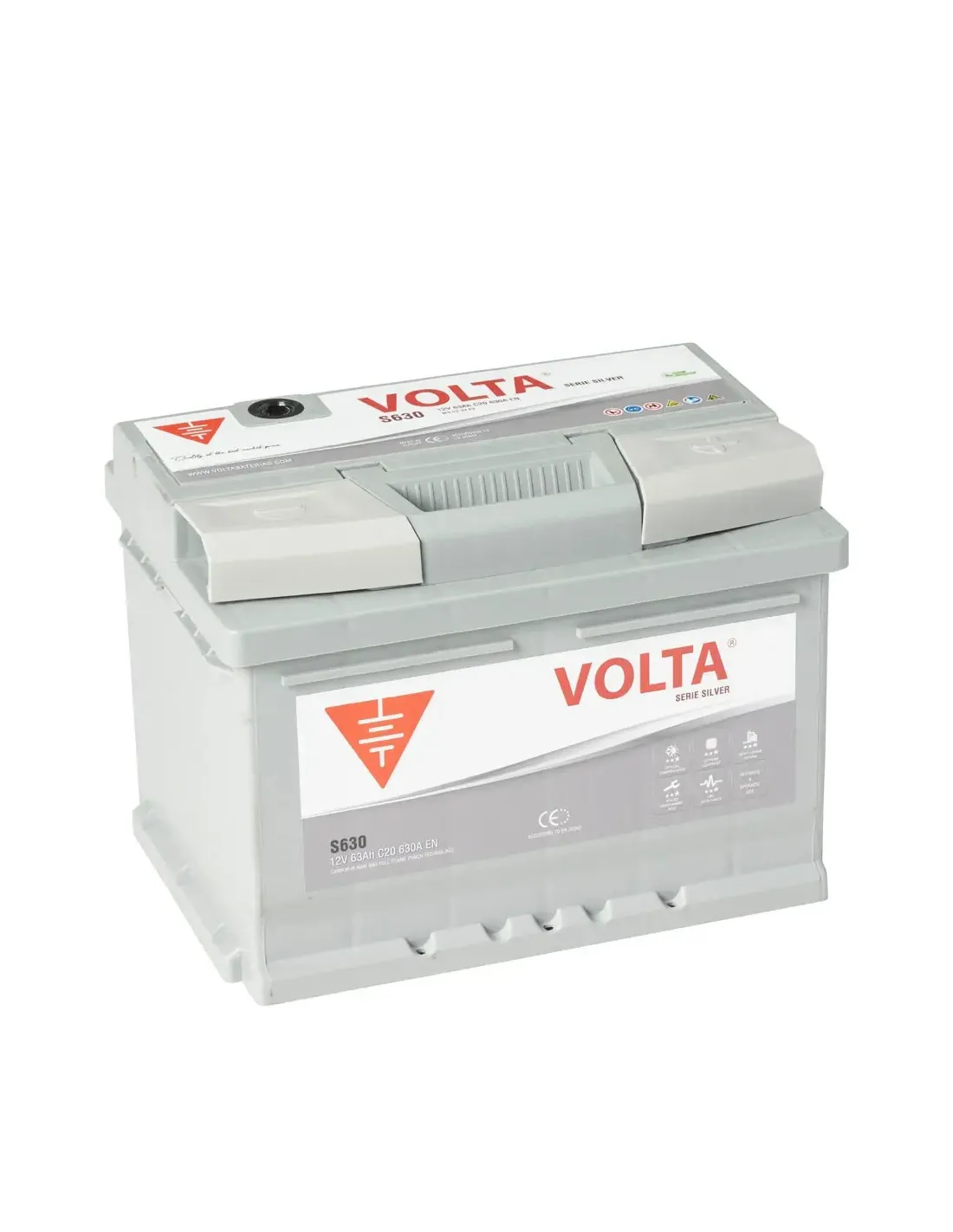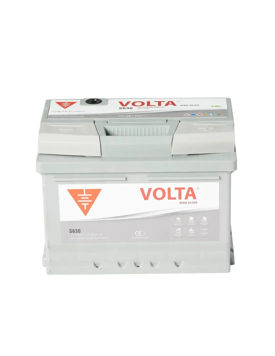 La batería de coche Volta S630D de 63Ah de la gama Silver está recomendada para los usuarios que quieren comprar una batería de coche de la calidad más alta del mercado, con la mayor fuerza, alta capacidad y mayor vida útil, especialmente diseñada para situaciones de temperaturas extremas, recomendado para vehículos con motores diésel con altas prestaciones y altas demandas de energía, también para coches que realizan muchos viajes cortos en áreas urbanas.
