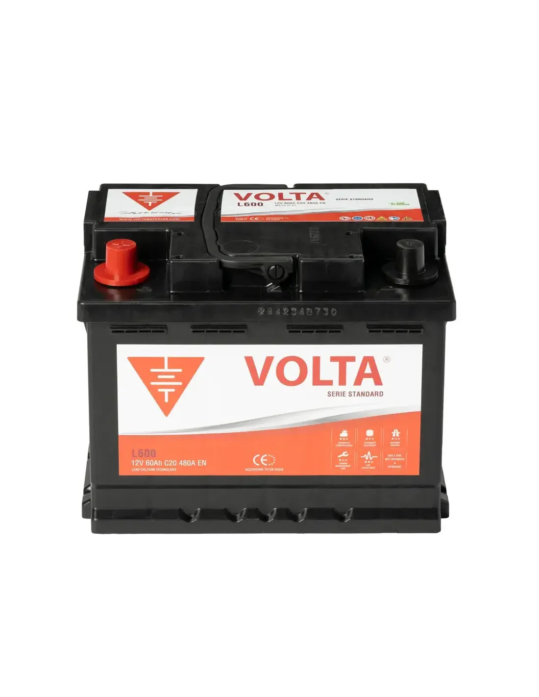 Batería Coche 60Ah 480A EN Standard Volta L600I +Izq