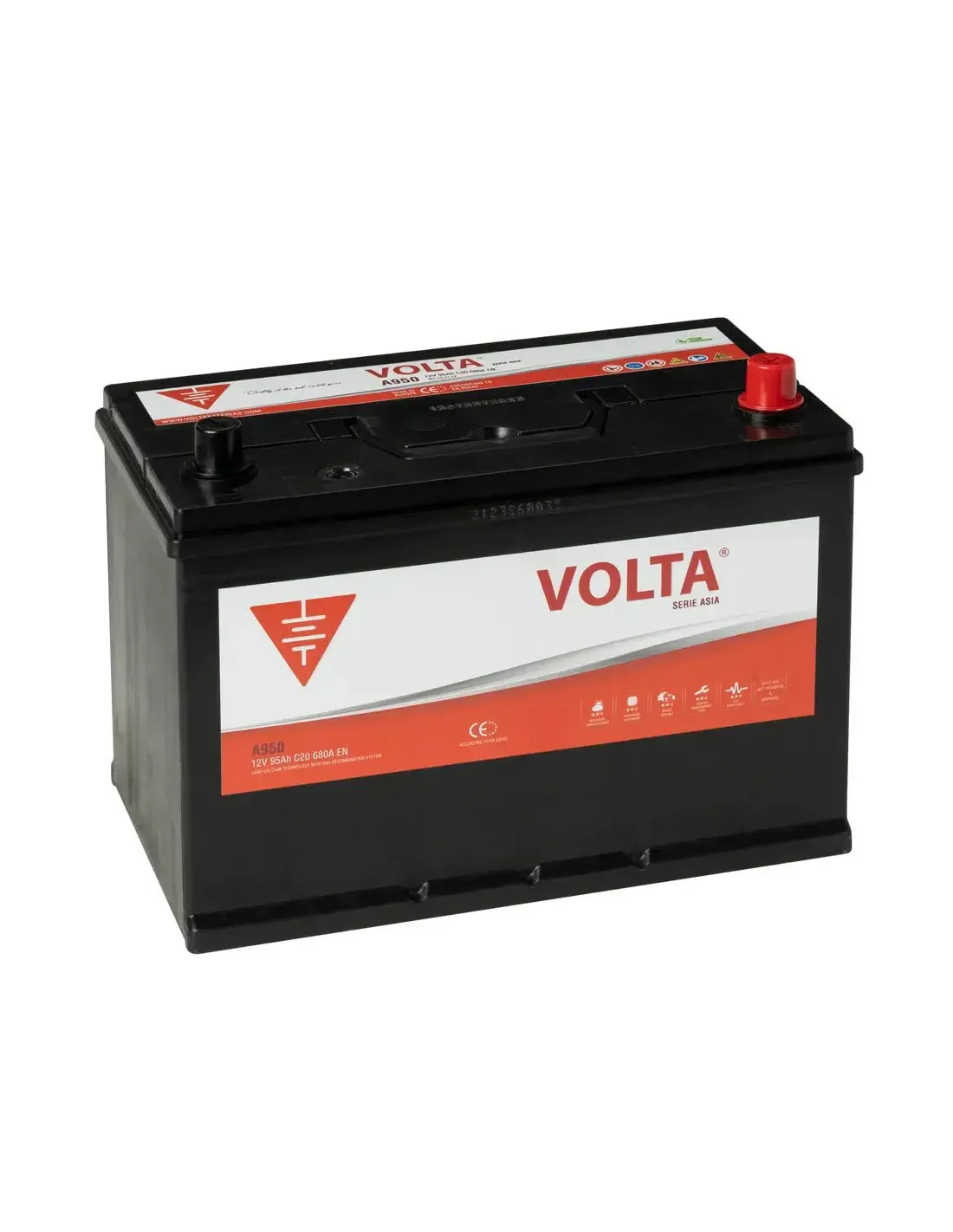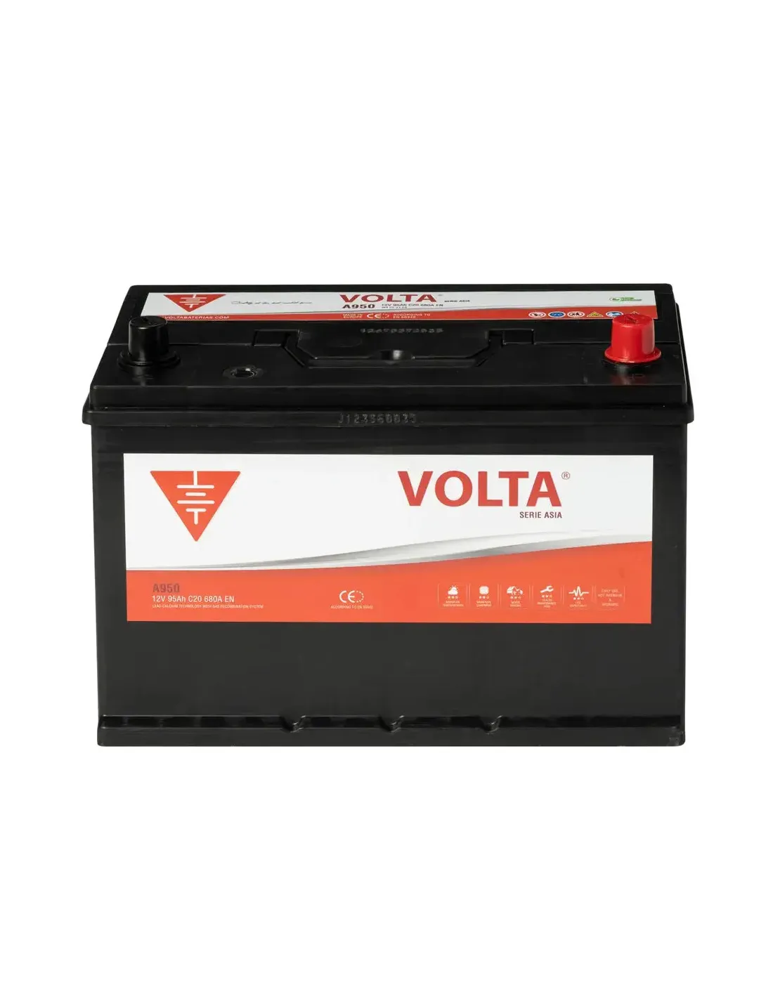 Batería Coche 95Ah 680A EN Asia Volta A950D +Dcha