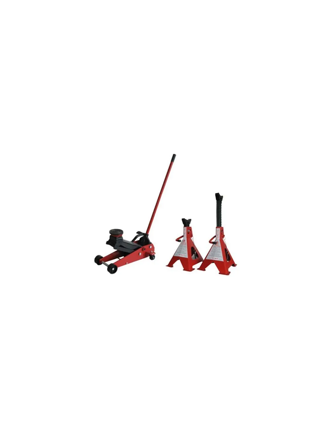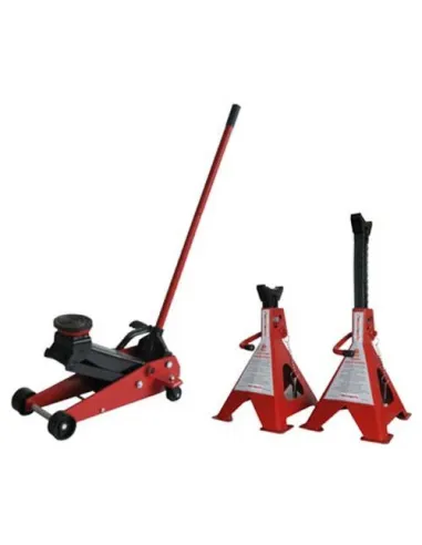 El Kit Gato de Carretilla y 2 Gatos de Caballete de Metal Works son adecuados para realizar trabajos de mantenimiento en los vehículos. El gato de carretilla permite una elevación sencilla, mientras que los caballetes lo mantienen la elevación fija para que podamos operar.