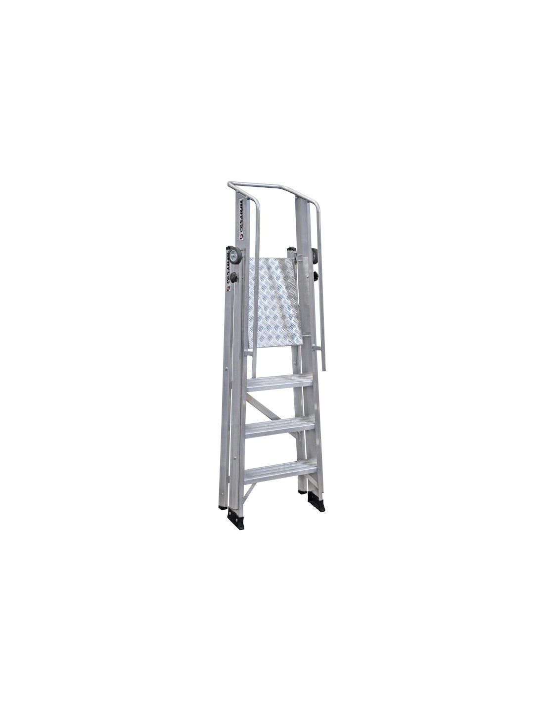 Plataforma de trabajo antideslizante de 42x53 cm. Rodapiés a partir de los 10 peldaños.