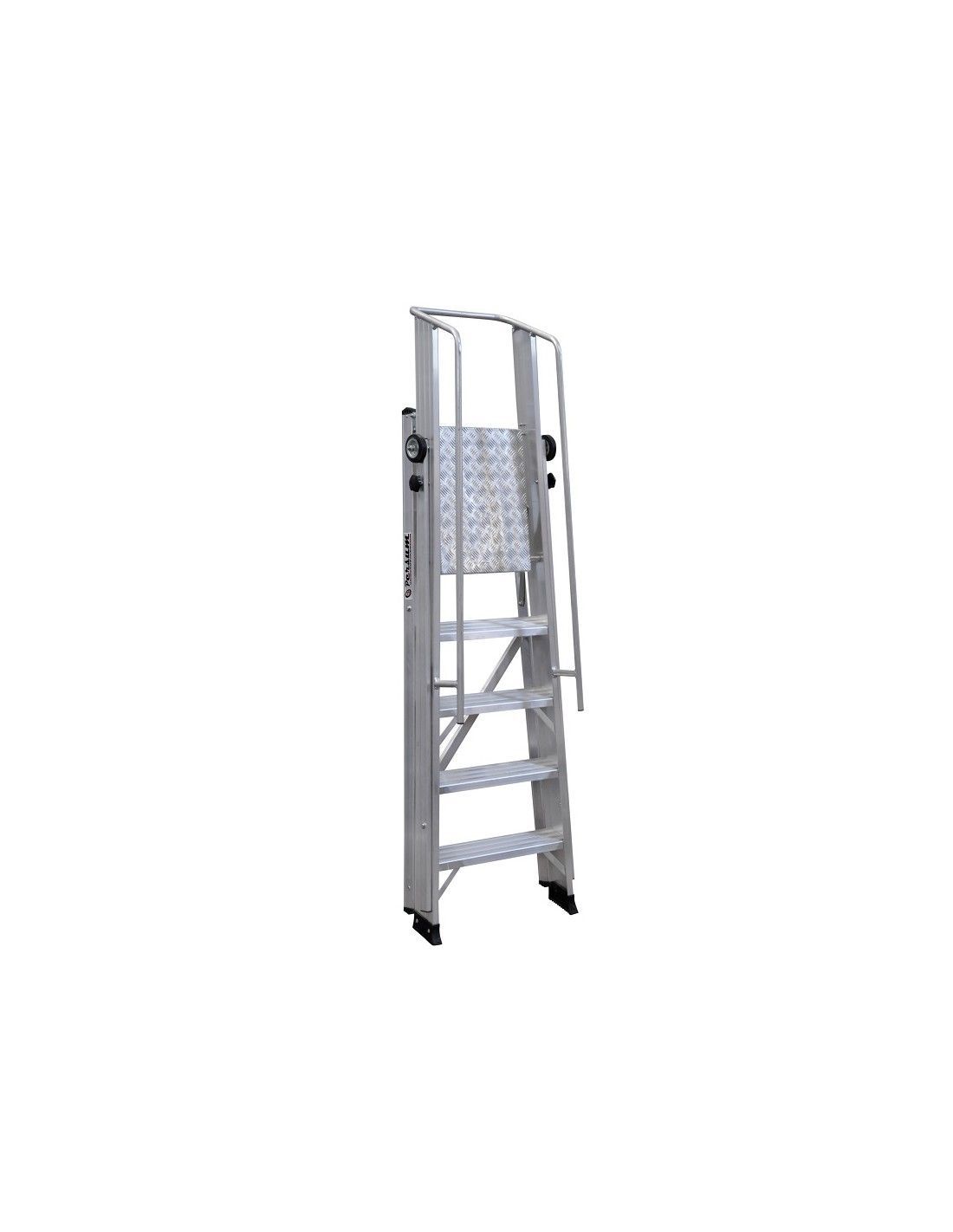 Plataforma de trabajo antideslizante de 42x53 cm. Rodapiés a partir de los 10 peldaños.