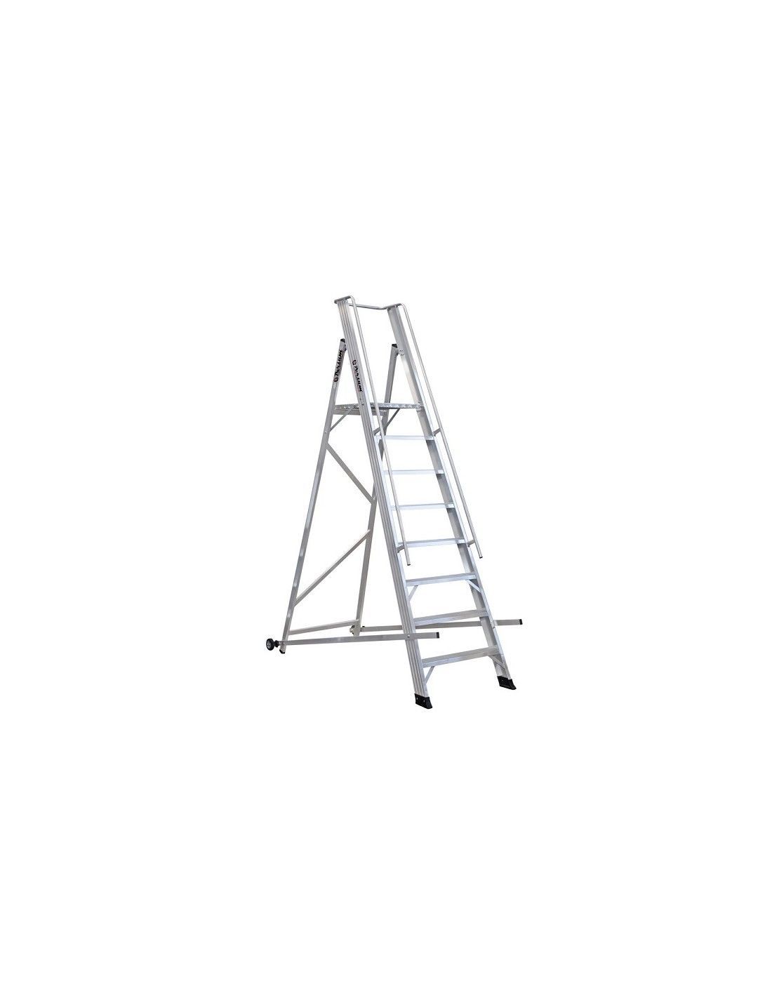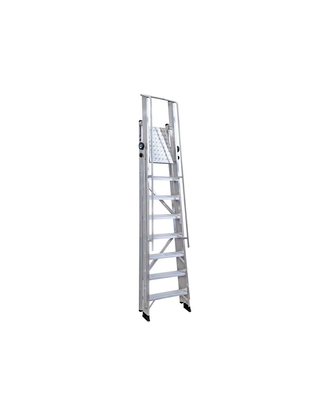Plataforma de trabajo antideslizante de 42x53 cm. Rodapiés a partir de los 10 peldaños.