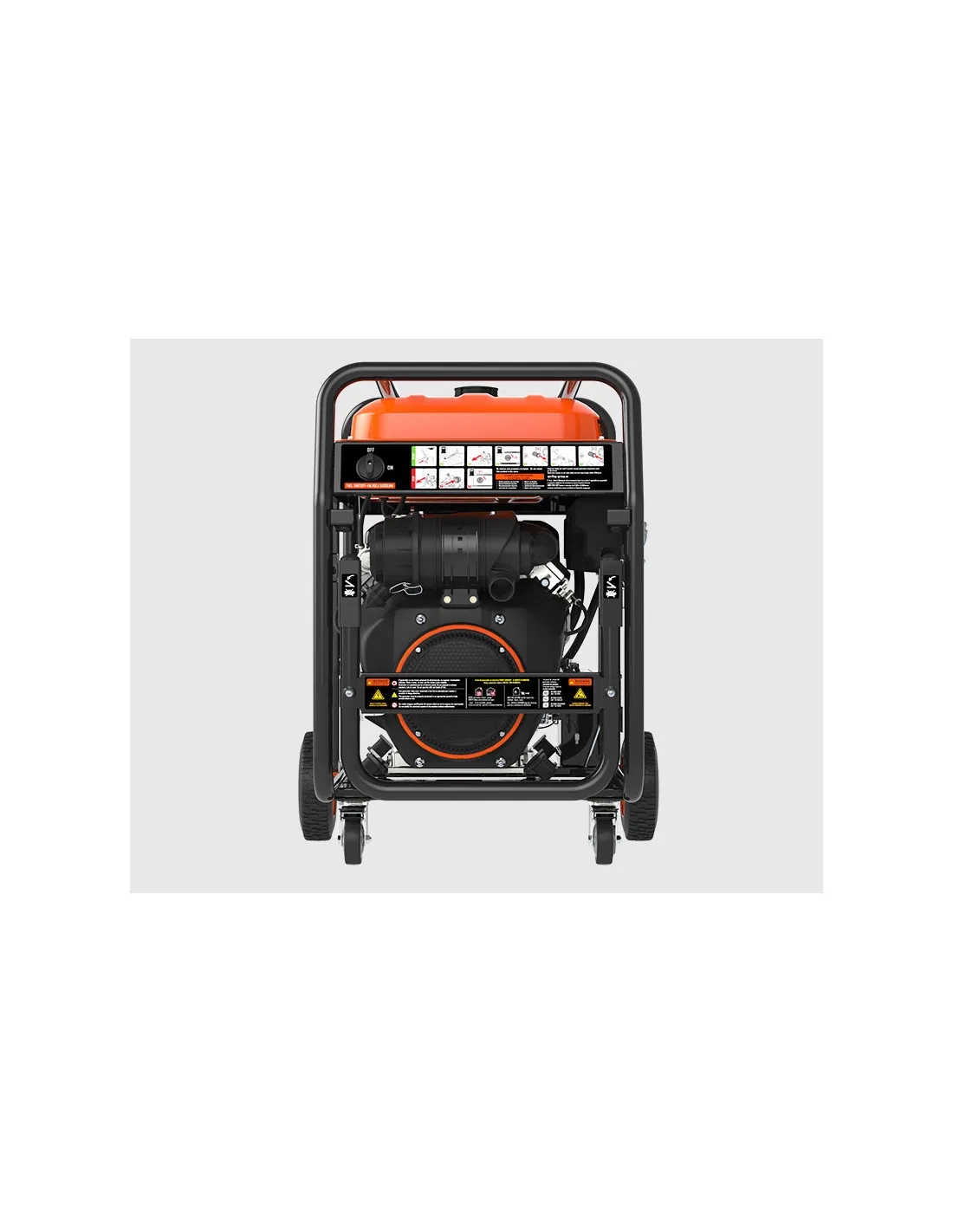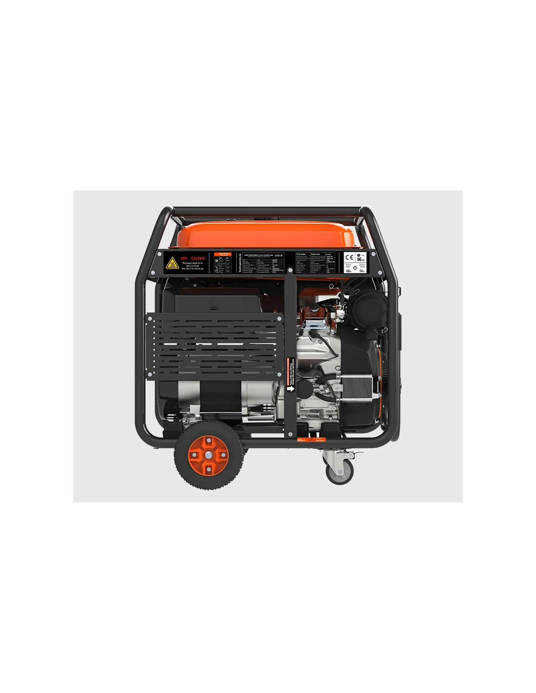KIT DE RUEDAS Y MANCERAS: Dos ruedas de 10” de alta carga + dos ruedas giratorias 360° facilitan el transporte del equipo sin esfuerzo.
