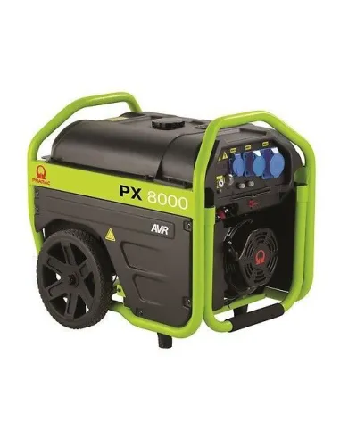 El generador PRAMAC PX8000 cuenta con un motor de gasolina marca PRAMAC SR190F de 420 cc y con una potencia máxima de 5,4 kW. La capacidad de su depósito son de 27 litros de combustible y dado su poco peso de 94 Kg hace de este generador una de las opciones perfectas a adquirir.
