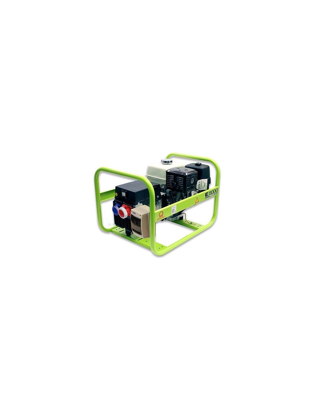 Generador trifásico (400 voltios), con motor Honda GX390 de 4 tiempos, 3000 rpm, marca Pramac de la serie E RENTAL. Esta gama de generadores está diseñada para cubrir las necesidades del mercado de alquiladores, proporcionando un alto rendimiento, con un fácil transporte, poco mantenimiento y a un precio económico. Este modelo incorpora DPP (protección diferencial) y cuenta con una potencia máxima de 8,3 kVA y continua de 7,0 kVA, con un consumo al 75% de 2,15 litros/minuto, dando una autonomía de hasta 3 horas.
