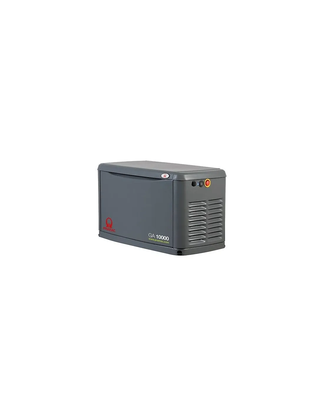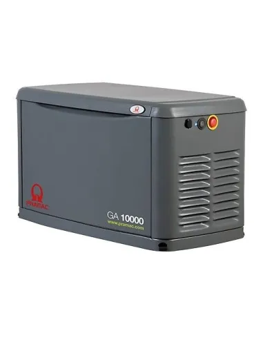 El grupo electrógeno a gas GA10000 perteneciente a la serie GA de la marca PRAMAC cuenta con un nuevo sistema de control móvil Mobile Link™ el cual permite conocer el estado de su grupo electrógeno en cualquier momento y desde cualquier lugar. Los dispositivos están fabricados para que funcionen incluso cuando no haya nadie en casa: si se produce un apagón, el generador se encenderá automáticamente. El grupo electrógeno a gas PRAMAC GA10000 cuenta con un motor Generac G-FORCE 1000 SERIES de 999 cc y con una potencia máxima de 10 KVA.