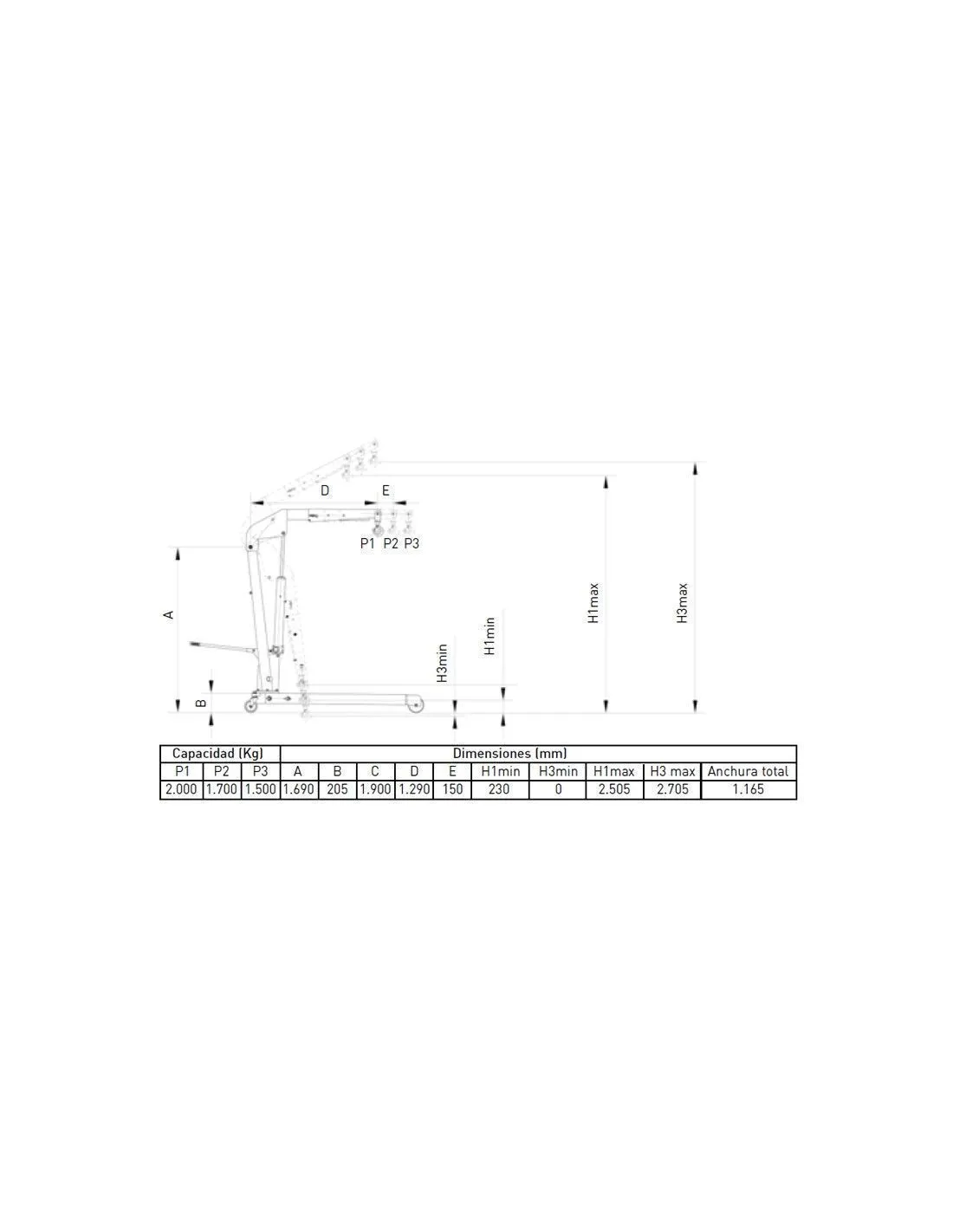 Capacidad de carga: 2 T.
