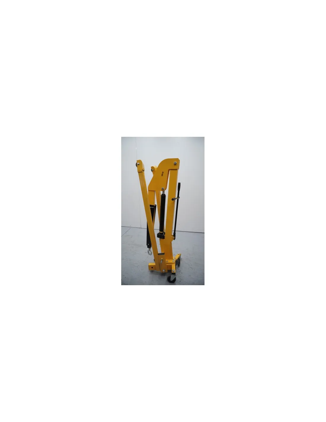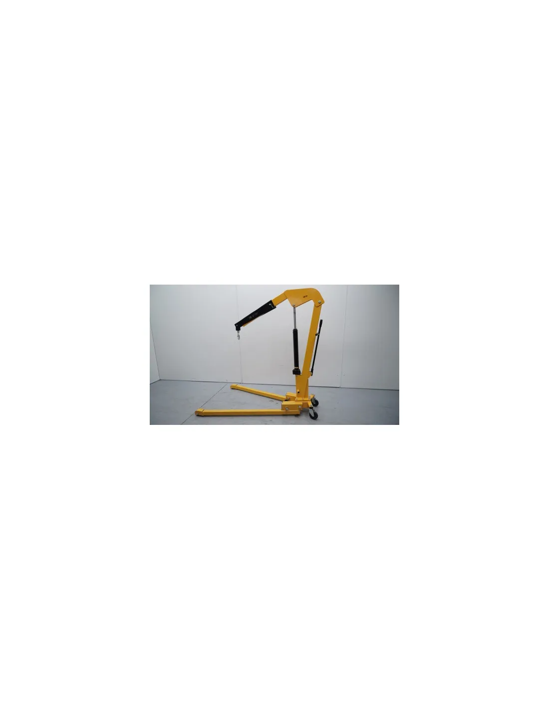 Grúa plegable de 1.000 kg, controlada mediante una bomba manual, muy manejable. Posee ruedas delanteras de nylon. Posibilidad de posicionar el brazo de la grúa en tres posiciones distintas. Gancho forjado muy resistente y giratorio. Marcado CE.