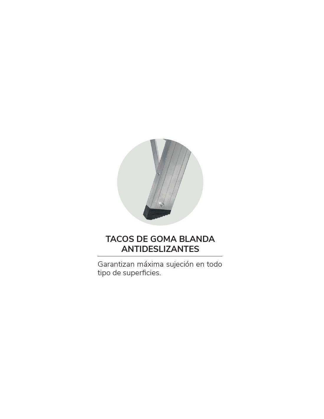 Tacos de goma blanda antideslizantes para garantizar una máxima sujeción en todo tipo de superficies.