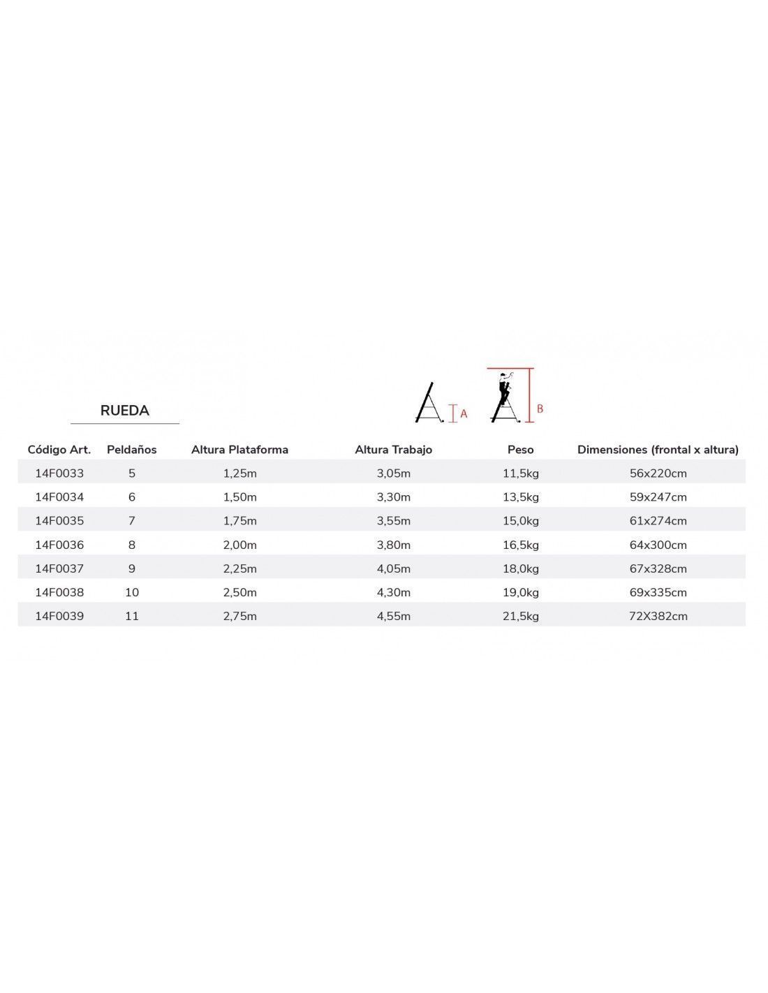 Perfil de 100x30mm con peldaños anchos de 10 cm antideslizantes. Evita la fatiga en trabajos prolongados.