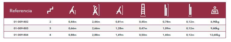 FICHA TECNICA DE TODOS LOS MODELOS DE ESCALERAS JOKER ALUMINIO PROFESIONAL:
