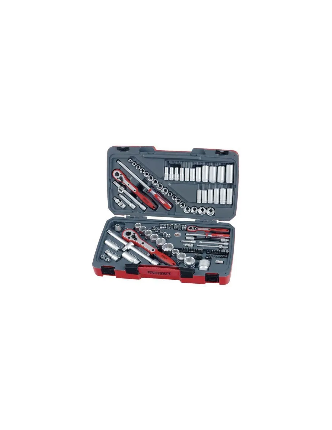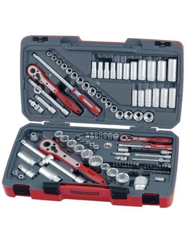 El Maletín de Llaves de Vaso Tengtools TM111 de 111 piezas está formado por vasos regulares de 1/4, 3/8 y 1/2, métricos y pulgadas, vasos largos, llaves para bujías de 16 y 21 mm, alargadera flexible de 1/4 adaptadores, alargaderas, mango corredizo, articulación universal y un surtido de puntas.