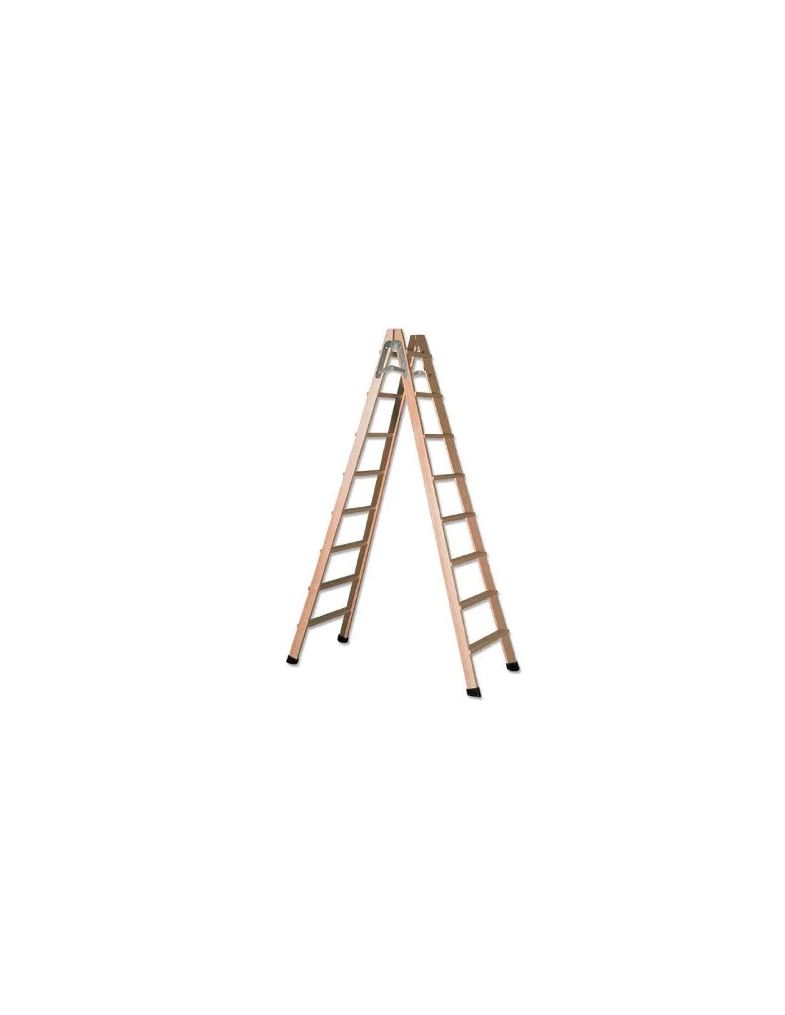 Escalera fabricada en su totalidad en madera de pino americano, de doble subida y cómodo peldaño plano.
