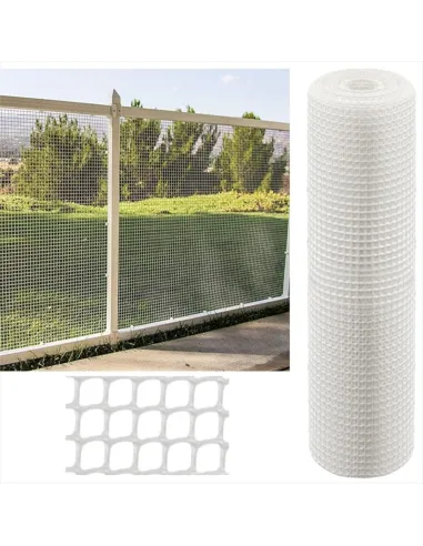 Malla cuadrada de plástico para cierres. Ideal para jardines, terrazas, piscinas, balcones, etc. Fácil de instalar y cortar.