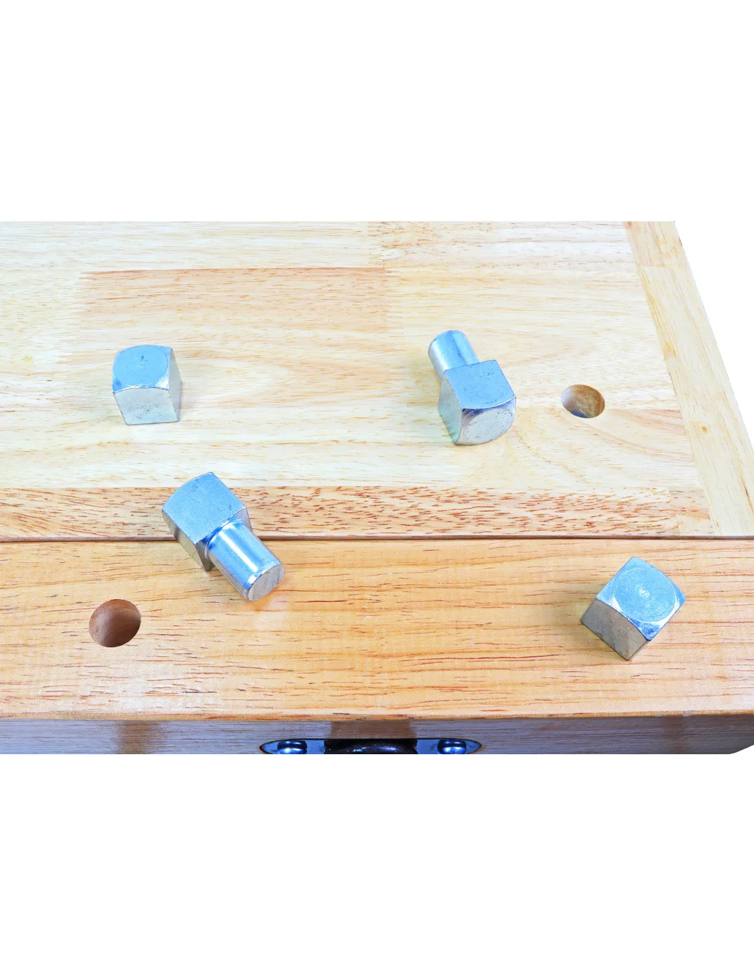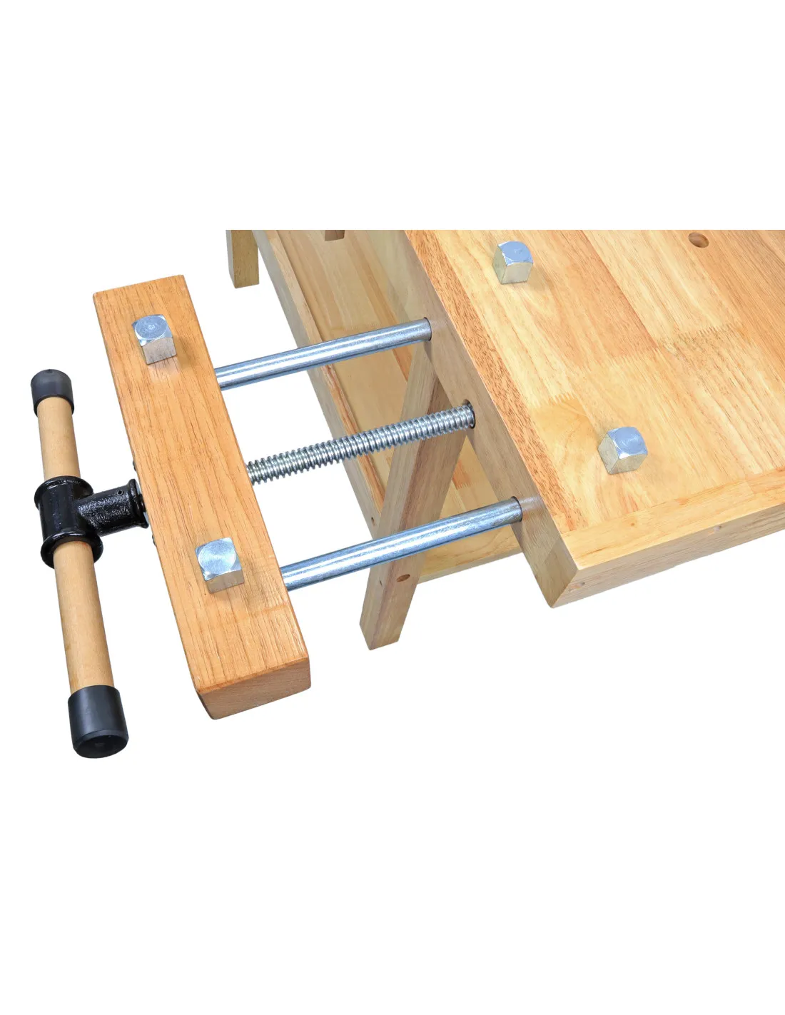 Banco de Trabajo de madera de carpintero es una estructura sólida de madera con una superficie de 1260 mm. Cuenta con 1 cajón, un estante y un tornillo lateral.