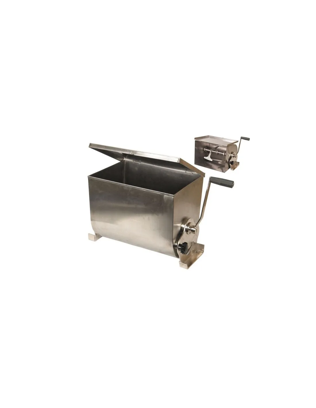 Amasadora mazcladora manual con cubeta abatible de 90% y tapa ambos inoxidables.