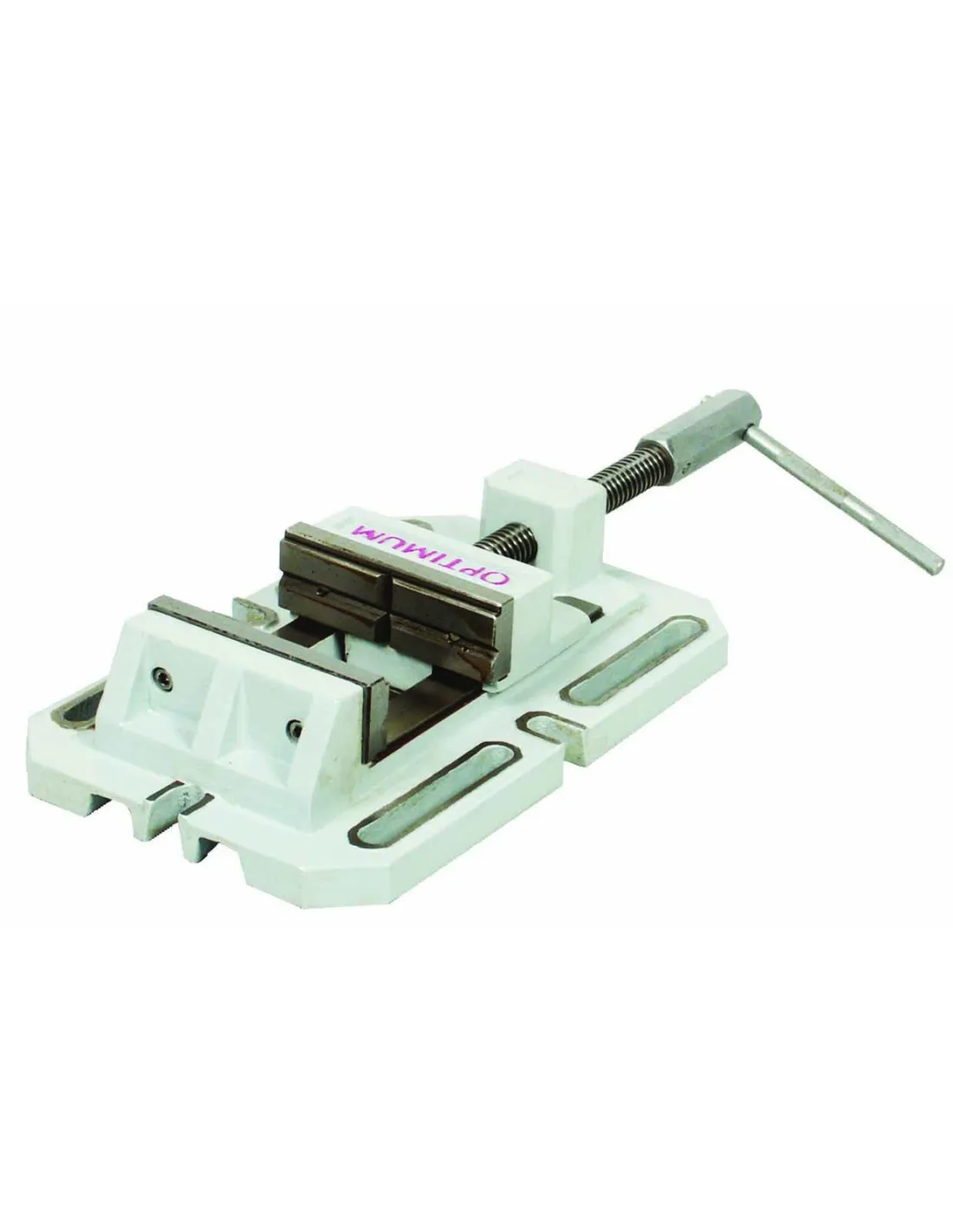 La Mordaza BSI 100 de Optimum es un dispositivo de fijación compacto de hierro fundido que ofrece múltiples posibilidades de montaje en la mesa de taladro gracias a los agujeros oblongos de los laterales.