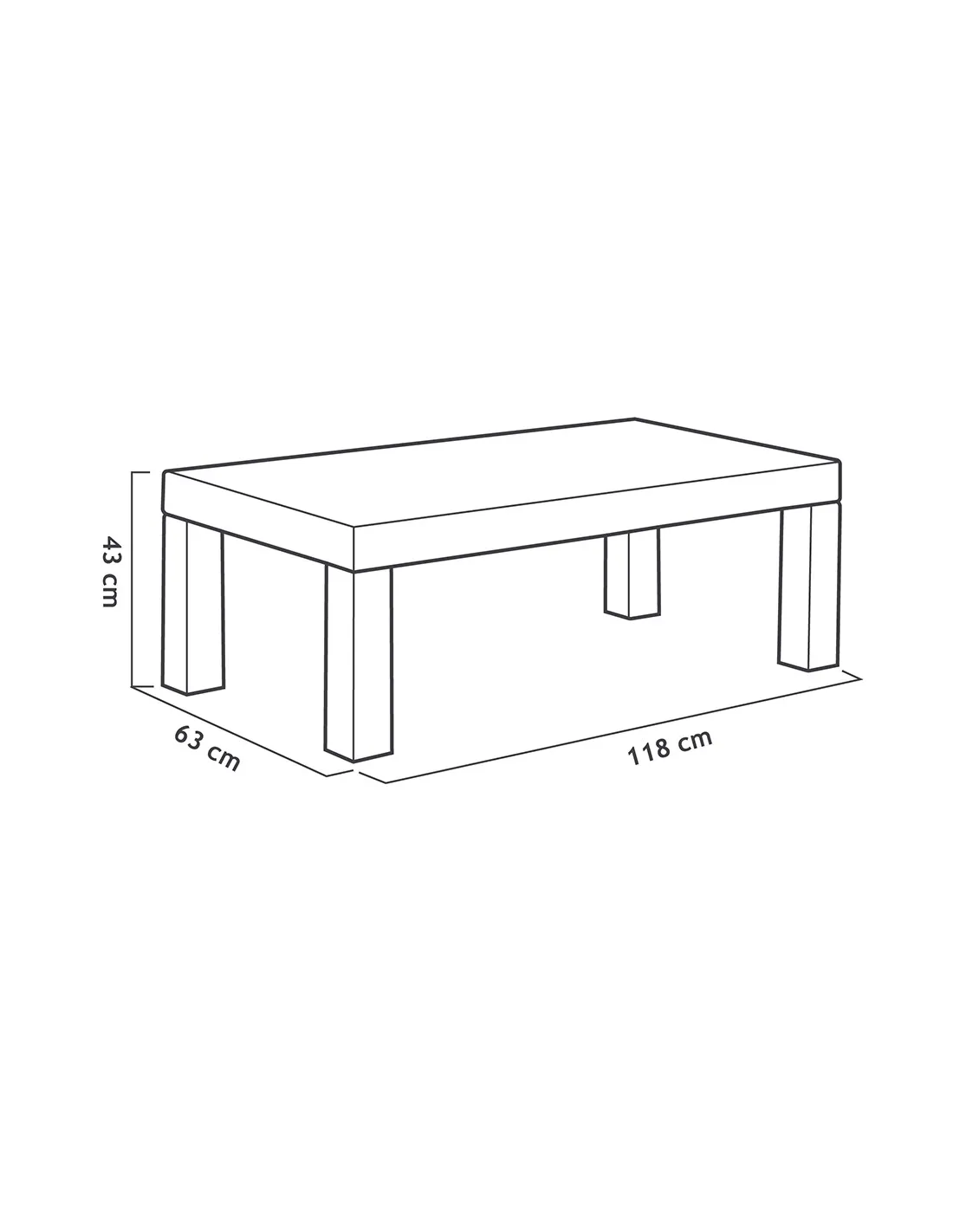 Medidas mesa: 34x63x118 cm (Alto x Profundo x Largo)