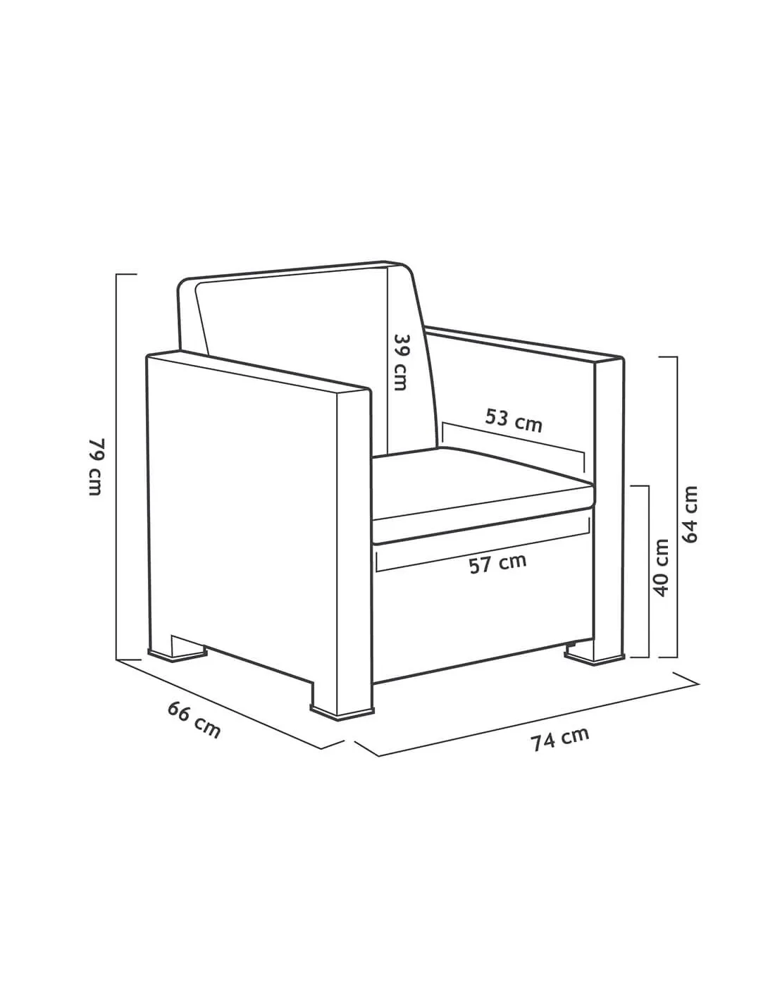 Medidas sillón individual: 79x66x74 cm (Alto x Profundo x Largo)