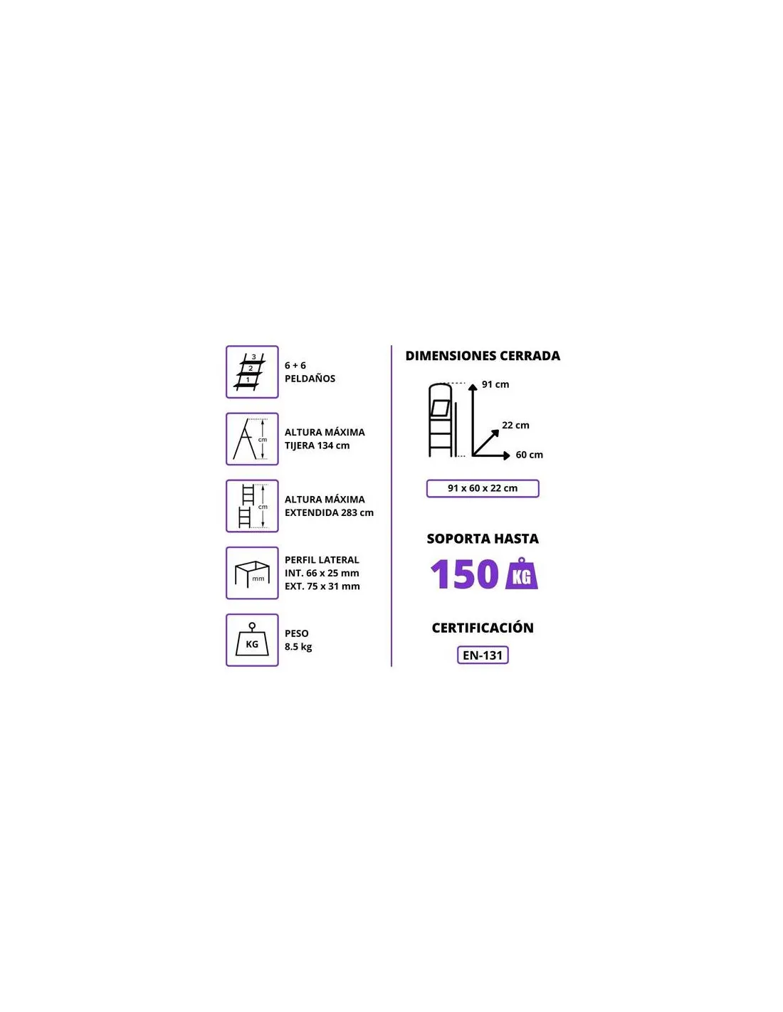 ESCALERA TELESCOPICA MULTIUSOS PESTAÑA 3+3 PELDAÑOS ALUMINIO