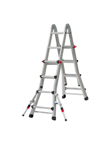 La escalera se puede cambiar en 3 posiciones diferentes: extensible, tijera y para trabajo en desnível.