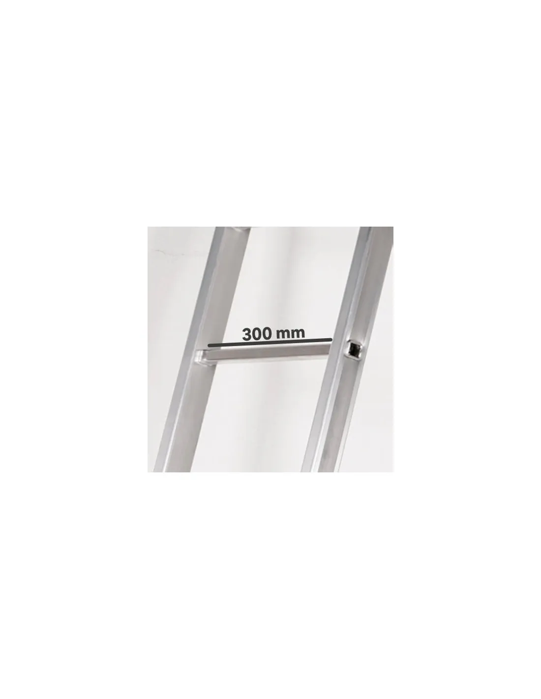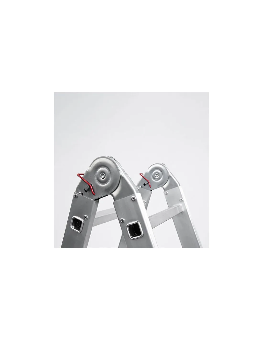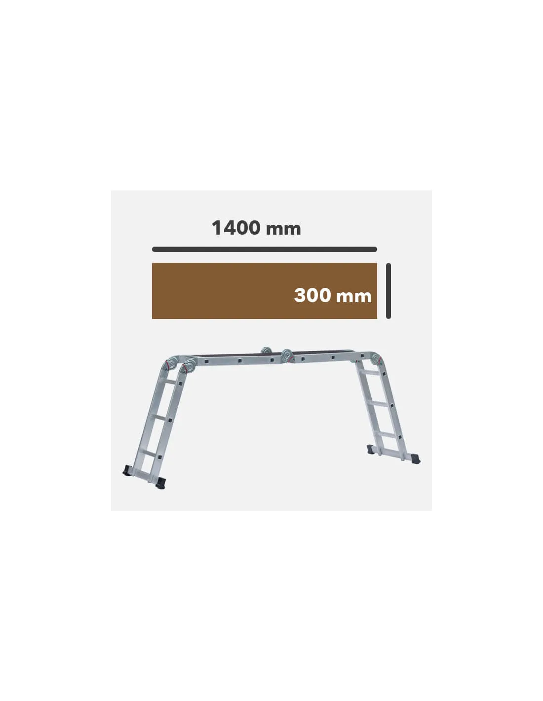 3 escaleras en 1, ya que trabaja en 3 posiciones: extensible, tijera y como plataforma ó andamio (1400x300 mm). Una vez plegada ocupa muy poco espacio, lo que facilita sutransporte y almacenaje.
