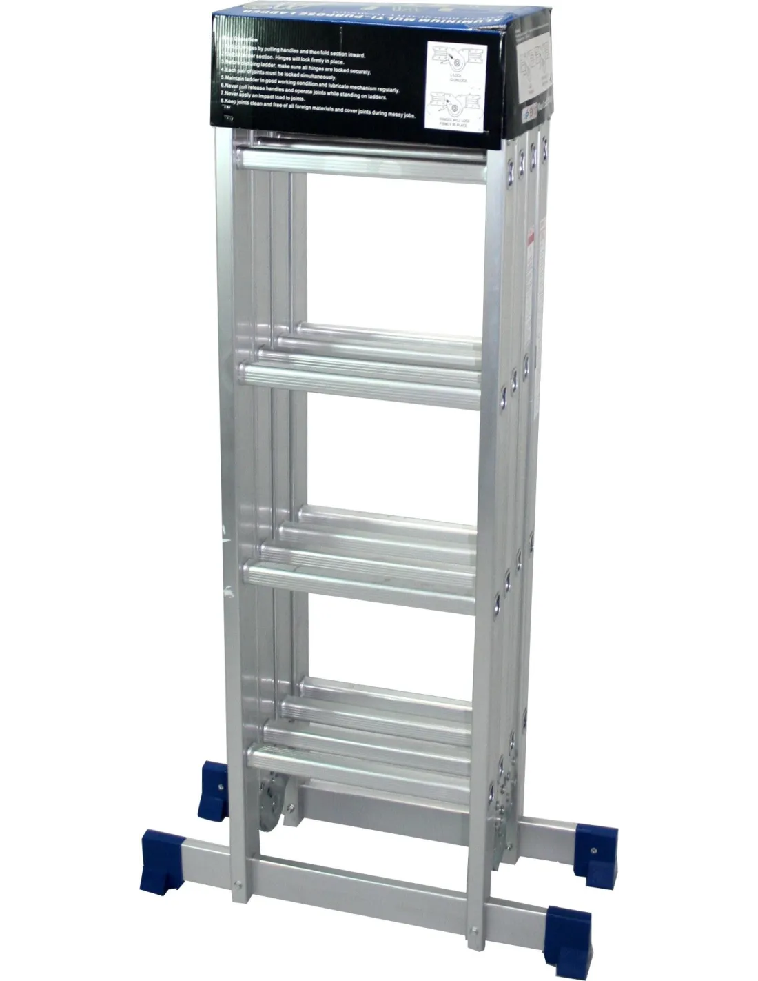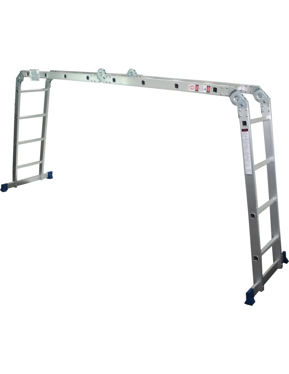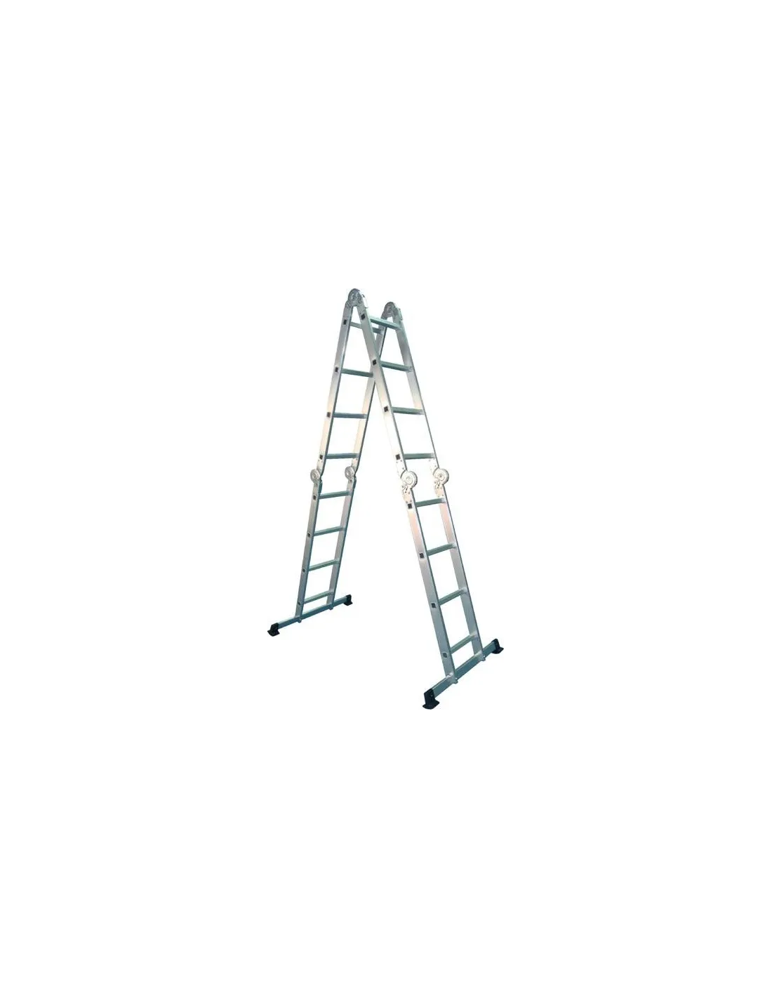 3 escaleras en 1, ya que trabaja en 3 posiciones: extensible, tijera y como plataforma (no incluye plataforma) ó andamio. Una vez plegada ocupa muy poco espacio, lo que facilita sutransporte y almacenaje.