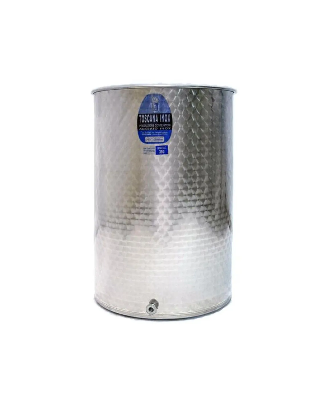 Depósito, barril, bidón de 200 litros de acero inoxidable 304 con fondo plano, equipado con grifo.