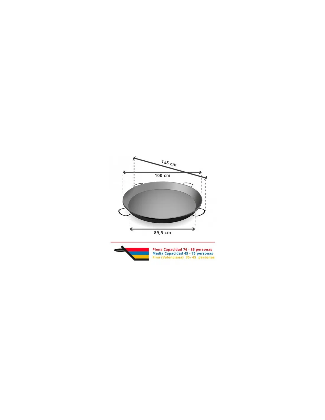 La paella, según la altura del arroz utilizado en su preparación, tienen una capacidad diferente, puedes consultar la segunda foto de nuestros productos para ver su capacidad, según la altura de la capa de arroz y las medidas de sus diámetros. La paella al estilo valenciano se caracteriza por tener una capa fina de arroz, pero podemos aprovechar la altura de la paella para cocinar un número mayor de raciones.
