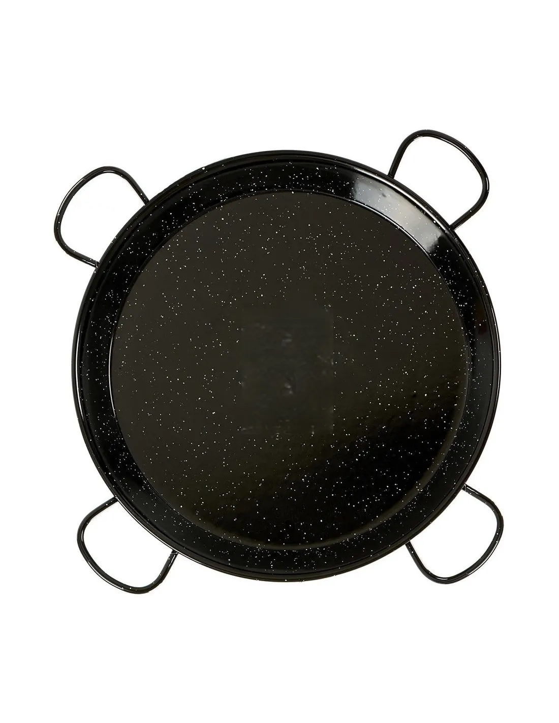 La paella esmaltada está fabricada en acero y recubierta por un esmalte moteado blanco y negro que le confiere protección frente a la oxidación. Las paelleras esmaltadas son fáciles de limpiar y almacenar, no precisan de mantenimiento, no se oxidan y no necesitan de una capa de aceite después de su uso.