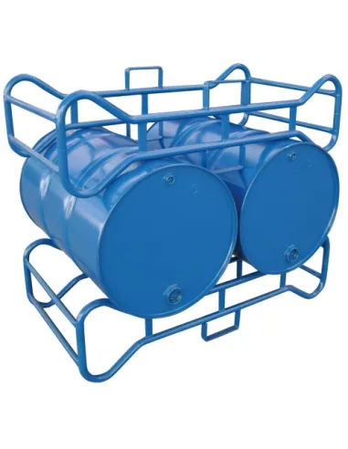 Palet para 2 bidones de 250 litros. Fabricado en tubo de acero muy resistente, con una capacidad de carga de hasta 500 kg.