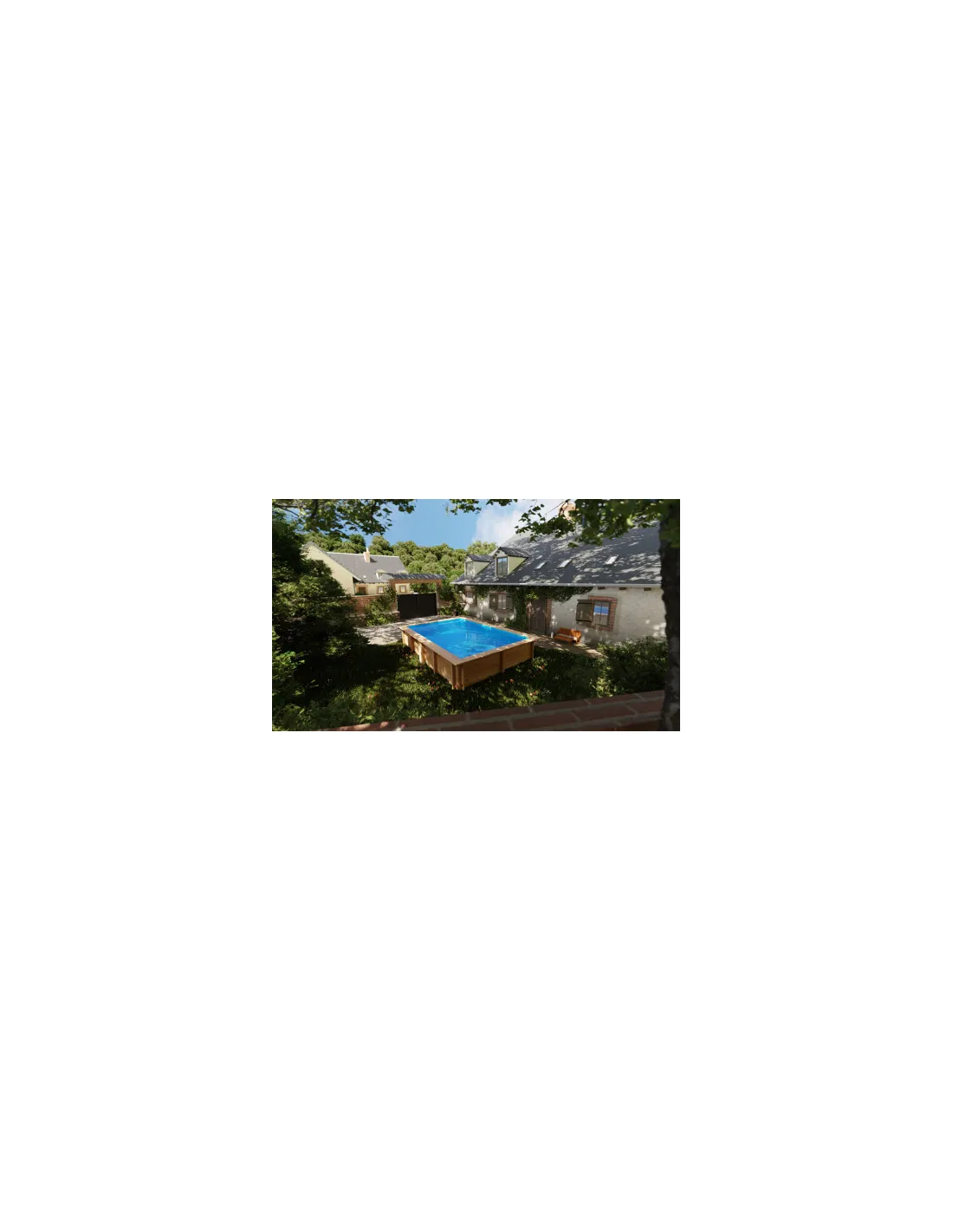 Piscina de madera rectangular fabricada en Francia en pino silvestre Francés