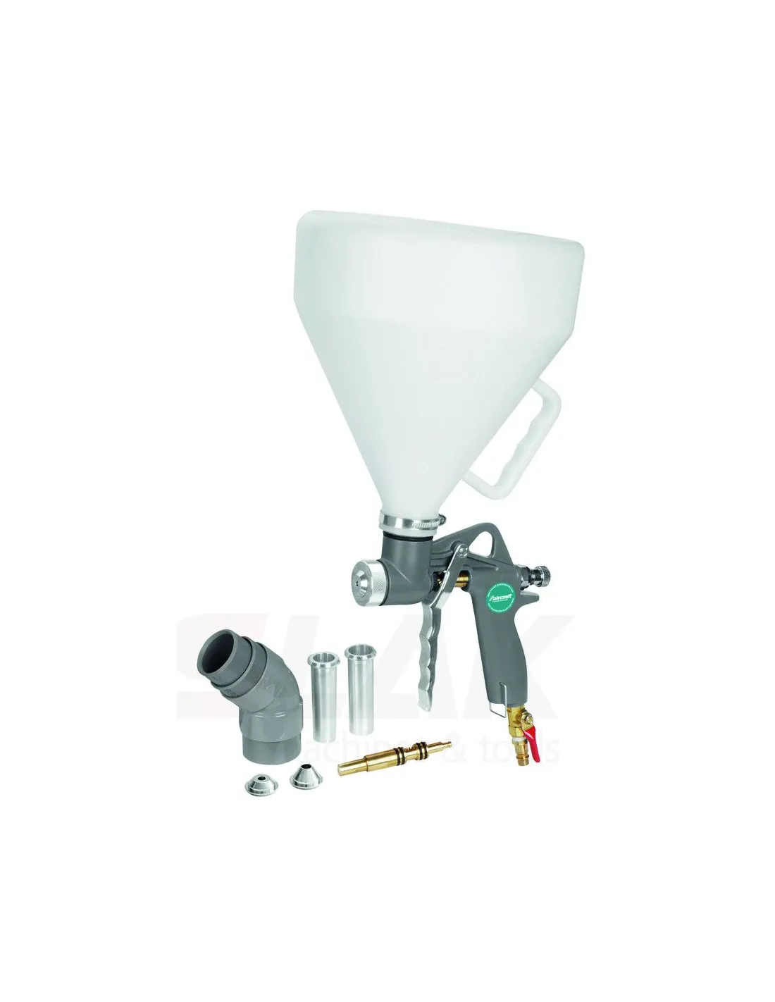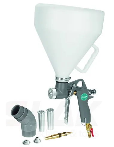 Pistola de tipo profesional para la aplicación de gran variedad de productos mediante su sistema de aplicación a media presión. Especialmente para productos de alta viscosidad, materiales de relleno, masillas, tapa poros, barnices, lacas, etc.