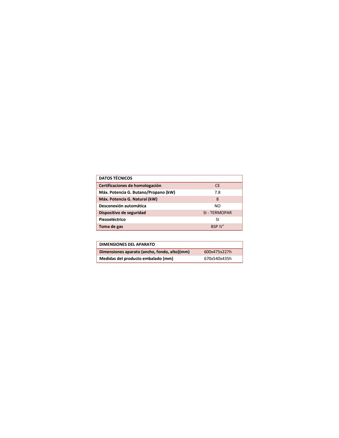 *Se suministra con inyectores para gas propano/butano. También se incluyen los inyectores para cambio a gas natural.