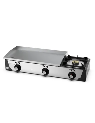 Gracias a sus quemadores en acero inoxidable, esta plancha ofrece una distribución homogénea del calor, mientras que la válvula termopar de seguridad y el encendido automático independiente por quemador aportan máxima seguridad y comodidad en cada uso. Además, su cajón recoge grasa frontal extraíble facilita la limpieza, y las patas regulables aseguran una perfecta estabilidad en cualquier superficie.