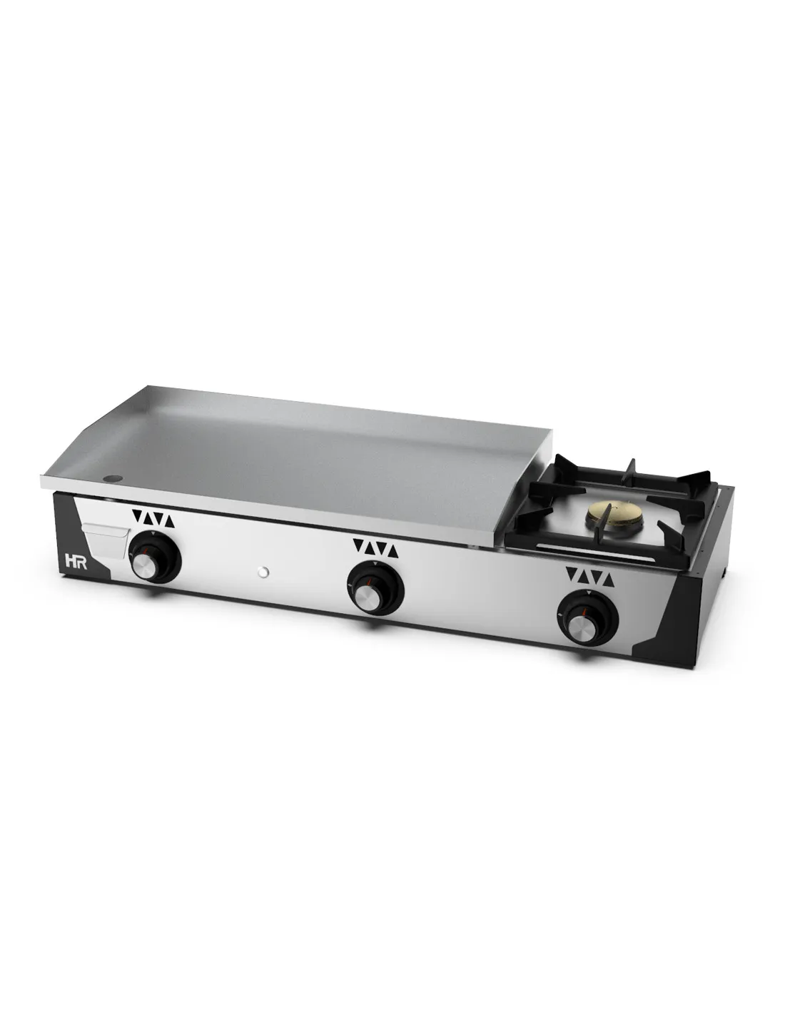 Plancha a gas de alto rendimiento, diseñada para ofrecer resultados profesionales tanto en entornos de hostelería exigentes como en cocinas particulares. Fabricada íntegramente en acero inoxidable, combina durabilidad, higiene y estética moderna.