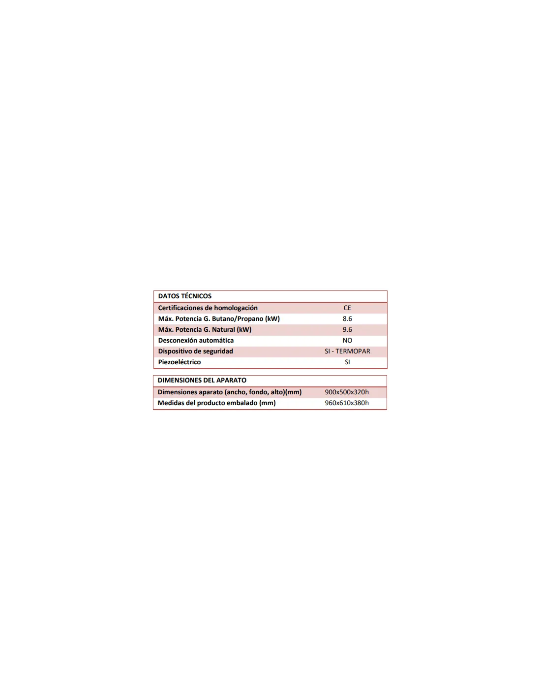 Kcal / h: 8.255