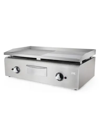 Plancha Mixta a Gas de Acero Rectificado diseñada para resistir el uso intensivo en cocinas profesionales, esta plancha combina una superficie mixta (lisa y ranurada) con un palastro de acero rectificado de 15 mm, que asegura una transmisión de calor rápida y homogénea, ideal para carnes, pescados, verduras o bocadillos.