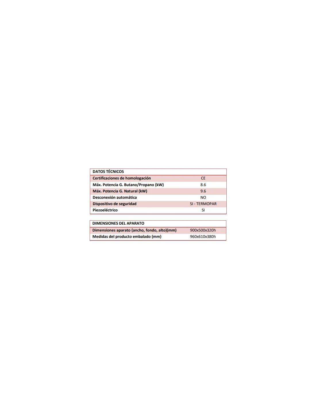 Kcal / h: 8.255