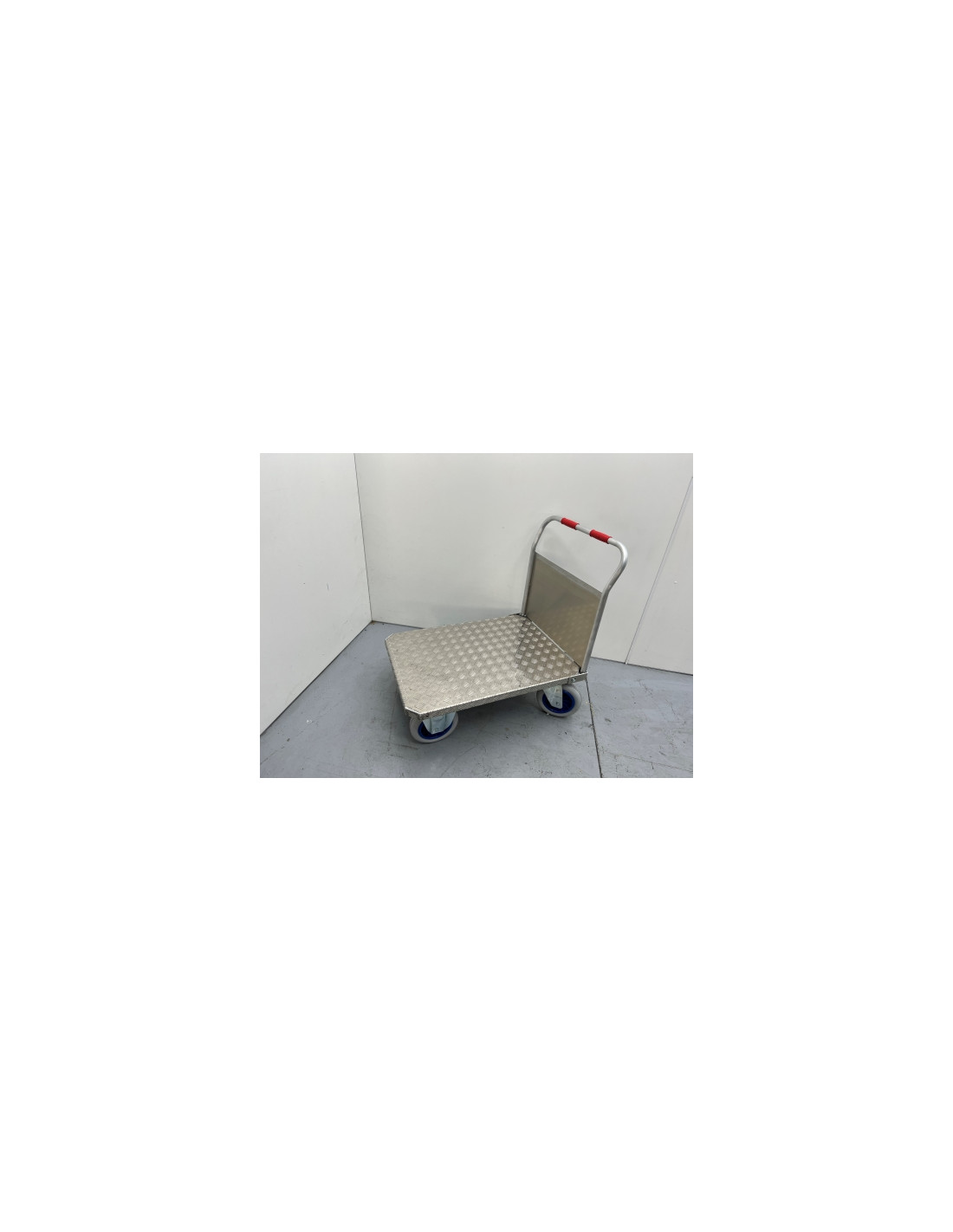Plataforma de aluminio con medidas 1.000x705, superficie lagrimada antideslizante, ideal para el transporte de productos hasta 300Kg. Posee dos Ruedas fijas y dos giratórias impinchables.